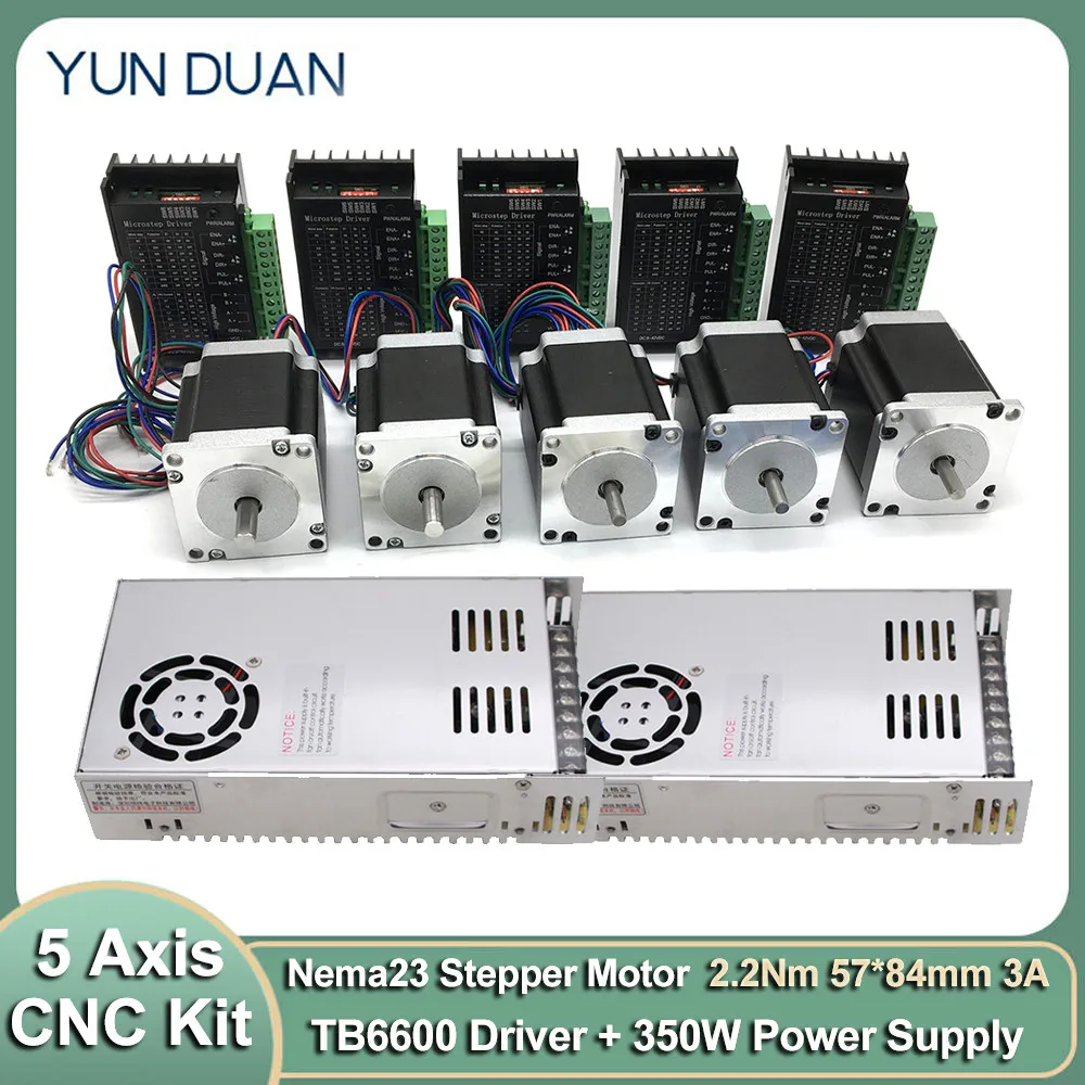 Шаговый электродвигатель Nema23, 5 шт., 57*84 мм, 3a, 6,35 нм, 350-ин, дюйма, 8 мм вал, шаговый драйвер 4A, комплект питания Вт, 5-осевой ЧПУ маршрутизатор