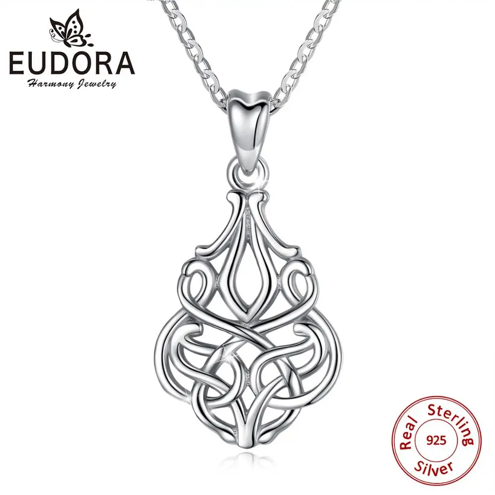 Eudora, серебро 925 пробы, Геометрическая линия, подвеска, ожерелье, ирландский кельтский стиль, плетеное ожерелье с узлом, хорошее ювелирное изделие для женщин, лучшие подарки