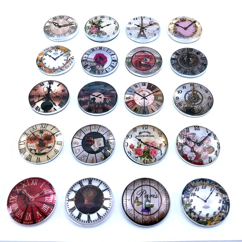24 шт./лот круглые винтажные часы карманные часы фото стекло кабошон 10 мм до 25 мм для DIY ювелирных изделий и компонентов T124