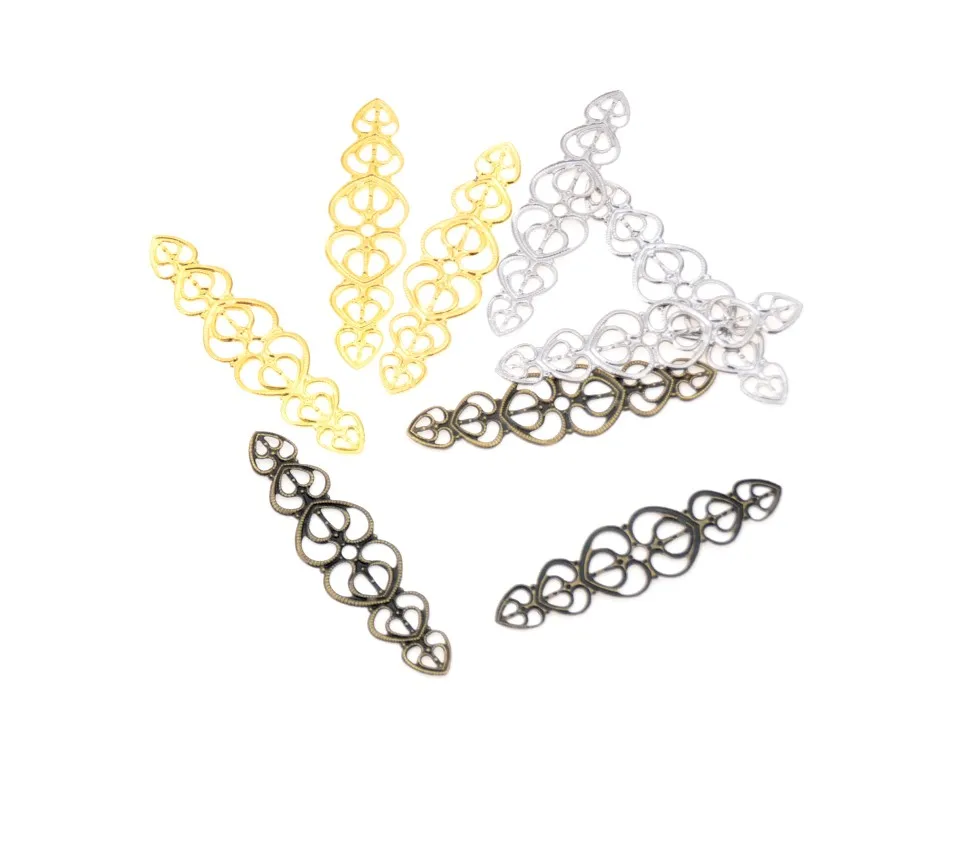 Бесплатная доставка, 20 шт., филигранные розетки в форме сердца, аксессуары для рукоделия, 5,4x1,4 см