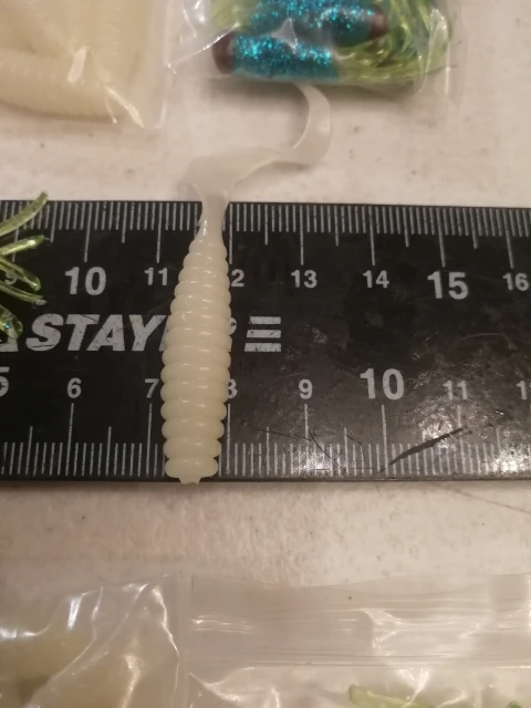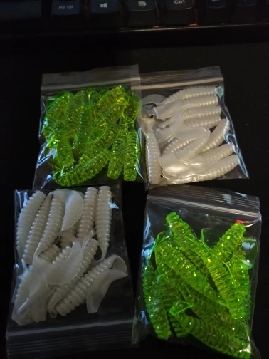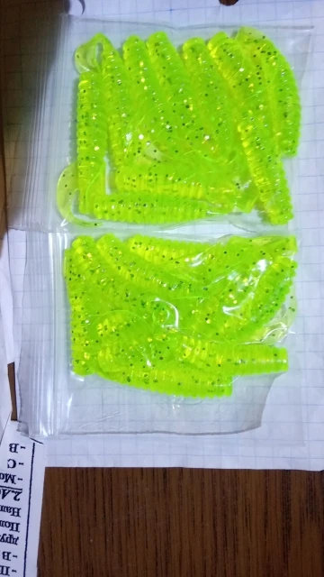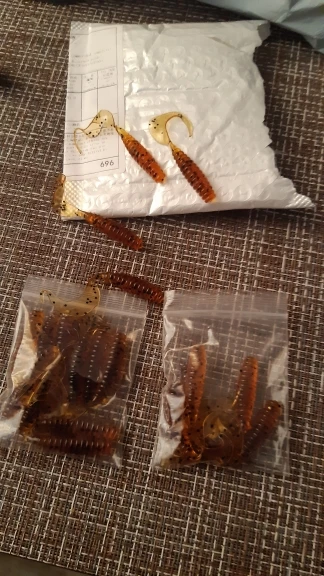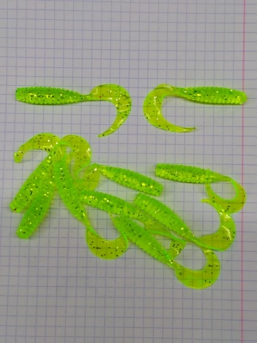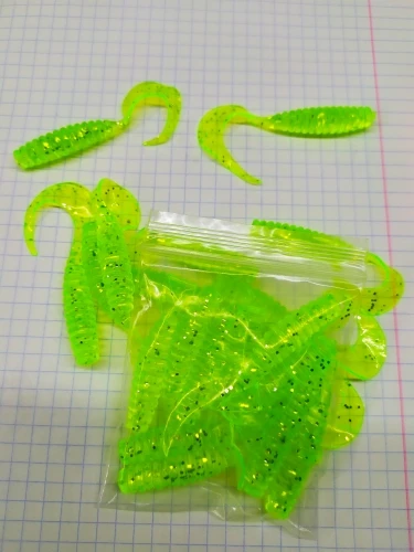 хорошие твистеры, размер соответствует, цвет насыщенный, яркий, упакованы в пакетики поэтому некоторые хвосты кривые, но это наврядли скажется на игре.... хвосты тонкие, это хорошо для лёгких джигов и не понятно как скажется на течении. приехали быстро в одном пакете с другими заказами. я брал на пробу, понравились, буду ещё заказывать.
