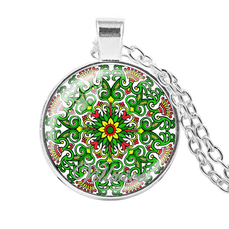 2018 модное ожерелье с зеленым цветком жизни, подвеска в виде чакры Ом для йоги, стеклянный купол, Священная Геометрия дзен, ювелирные изделия, подарки