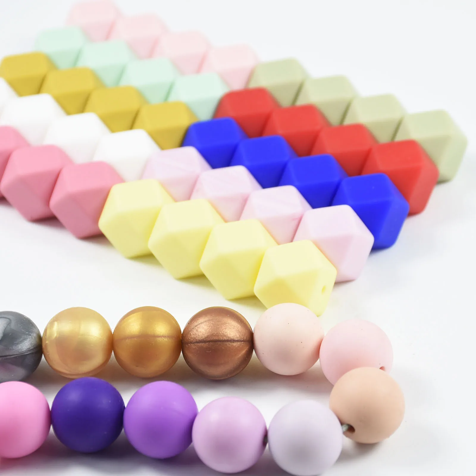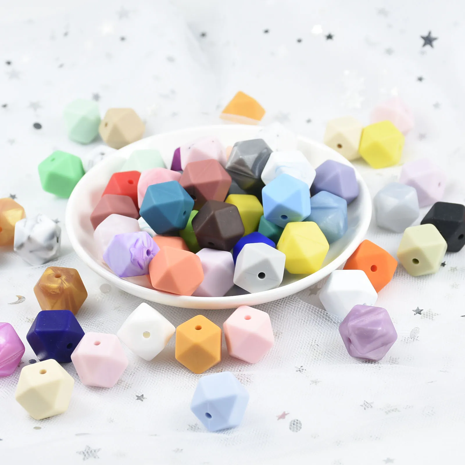 50 шт Силиконовые 14 мм шестигранные бусины DIY для изготовления ювелирных изделий, подвеска для цепочки с бусинами для переноски детей, разные цвета, свободные бусины
