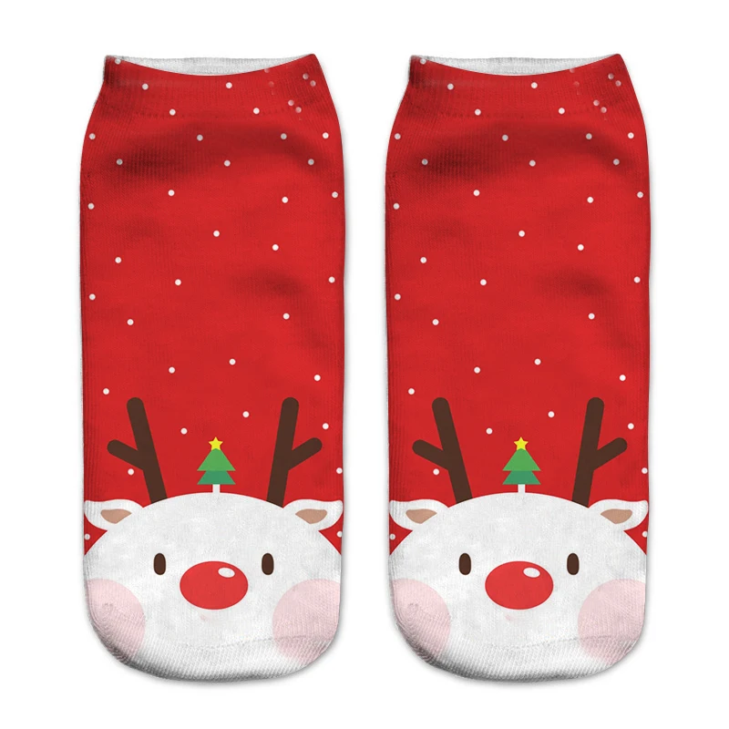 Женские рождественские носки с 3D рисунком, носки унисекс с изображением лося, снеговика, Санта-Клауса, женские рождественские носки по щиколотку с низким вырезом, женские носки