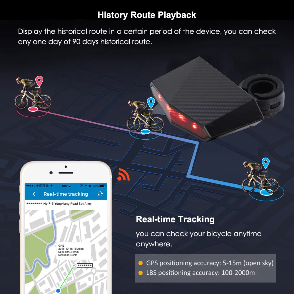 Unique DesignGPS Tracker in Bicycle Tail Lamp