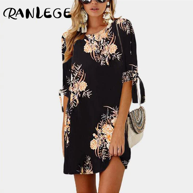Женское летнее платье RANLEGE 2022, шифоновое пляжное платье в стиле бохо с цветочным принтом, туника, сарафан, свободное мини-платье для вечеринки, Vestidos 5XL