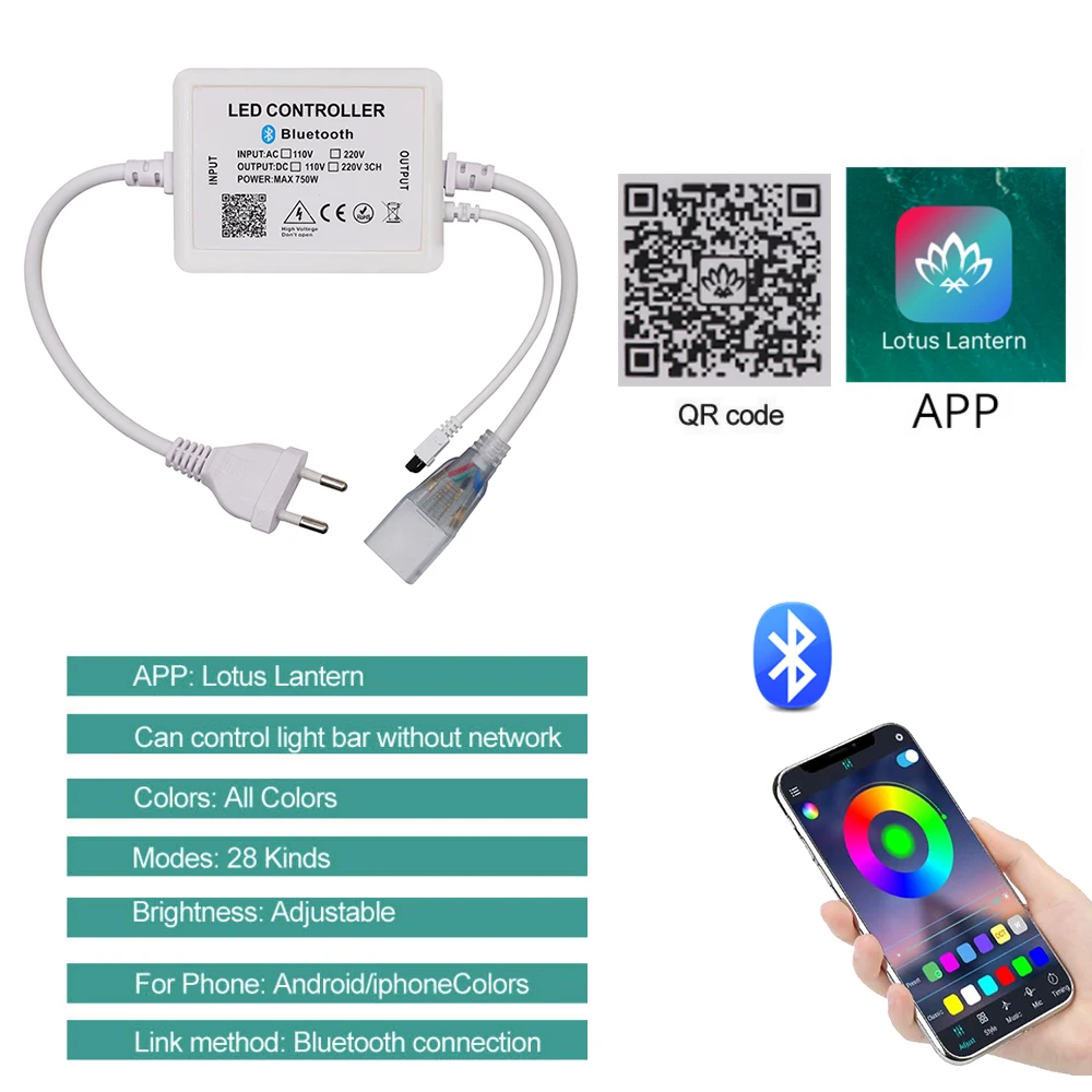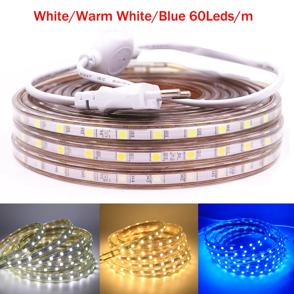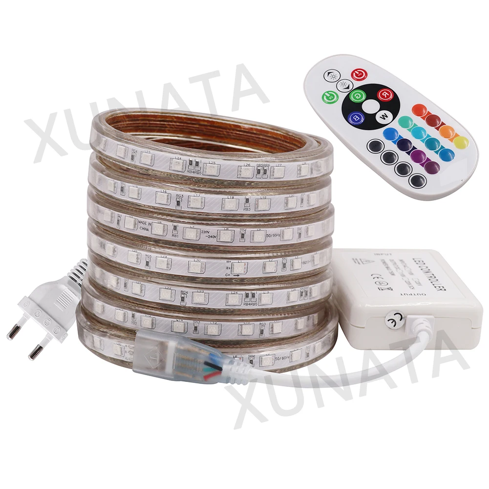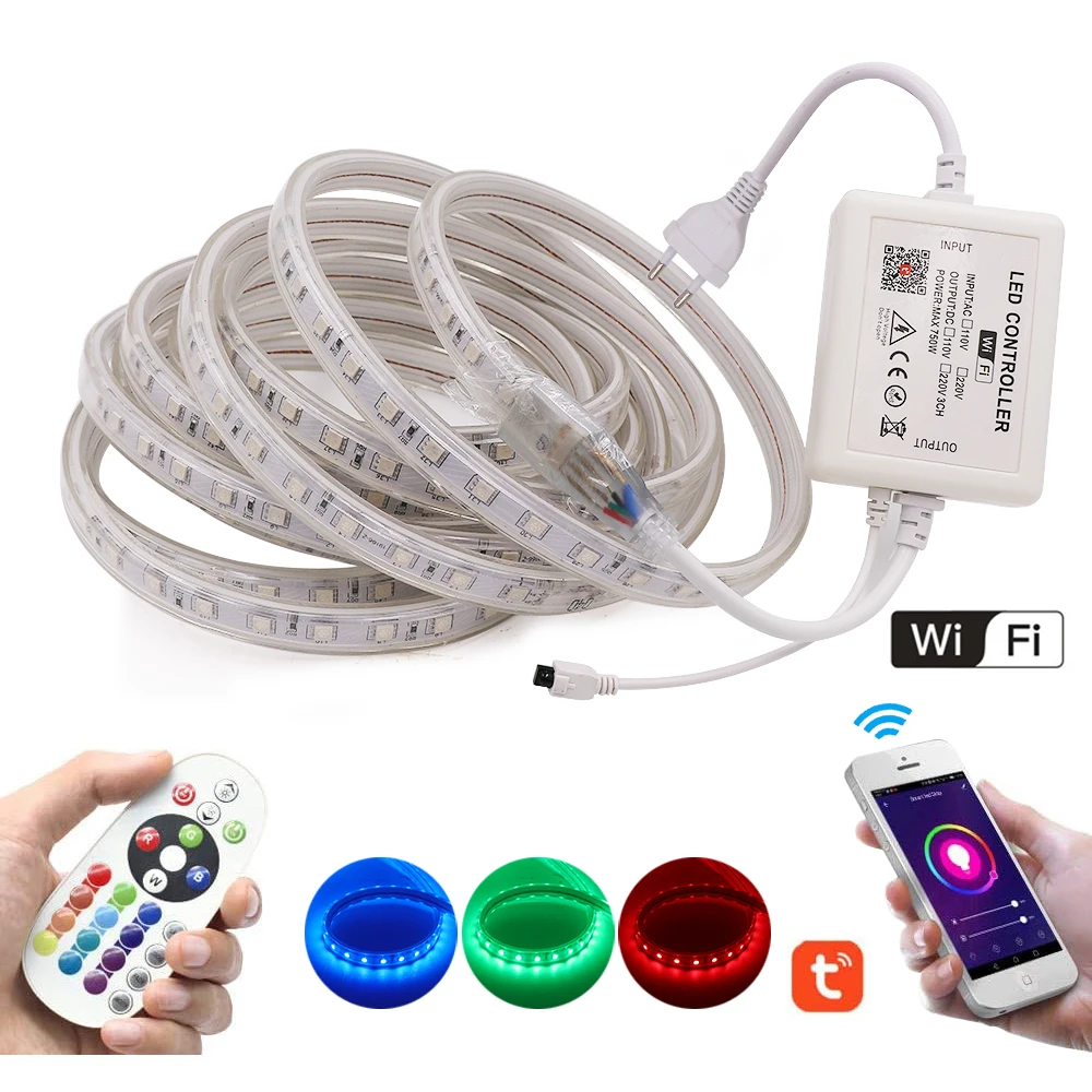 Светодиодная лента RGB, светильник AC220V SMD5050, гибкая Водонепроницаемая светодиодная лента, 60 светодиодовм, WiFi, Bluetooth, лента управления для дома, праздничного декора, EU