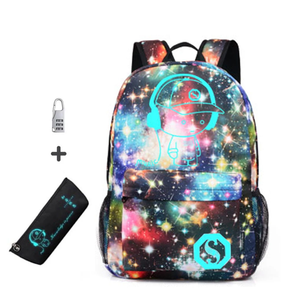 Рюкзак с защитой от кражи, ночник, детский школьный рюкзак, чехол-карандаш, светящиеся школьные сумки с аниме для мальчиков и девочек, школьный ранец