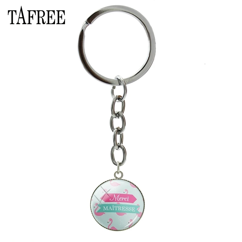 TAFREE Merci MAITRESSE, модный брелок с фламинго, новинка, подарок для учителя, брелок для ключей, стеклянная цепочка для ключей, автомобильные ювелирные изделия, MM64 Фотографии товара: