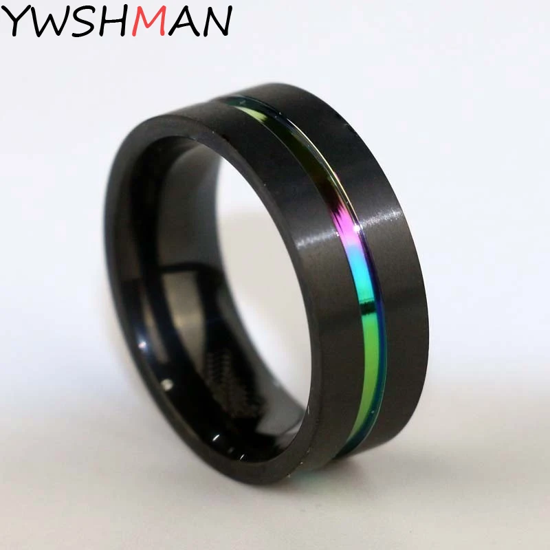 Черное обручальное кольцо кольца из титановой нержавеющей стали кольцо мужское , 8 мм, разноцветное Радужное парные кольцакольцо для пар