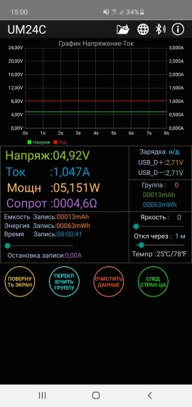 Классный тестер. Экран большой и яркий. Строит графики. Много входов и выходов. Потребитель .берет 3 ампера, но быстро нагревается. Наличие блютуз помогает удобно мониторить состояние зарядки. С управлением и подключением к телефону надо разбираться.