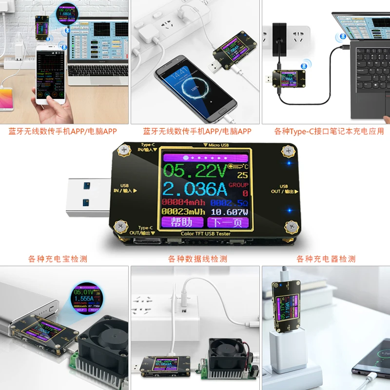 TFT цветной USB Type-c тестер беспроводной Bluetooth DC Цифровой вольтметр измеритель напряжения тока детектор внешнего аккумулятора индикатор зарядного устройства