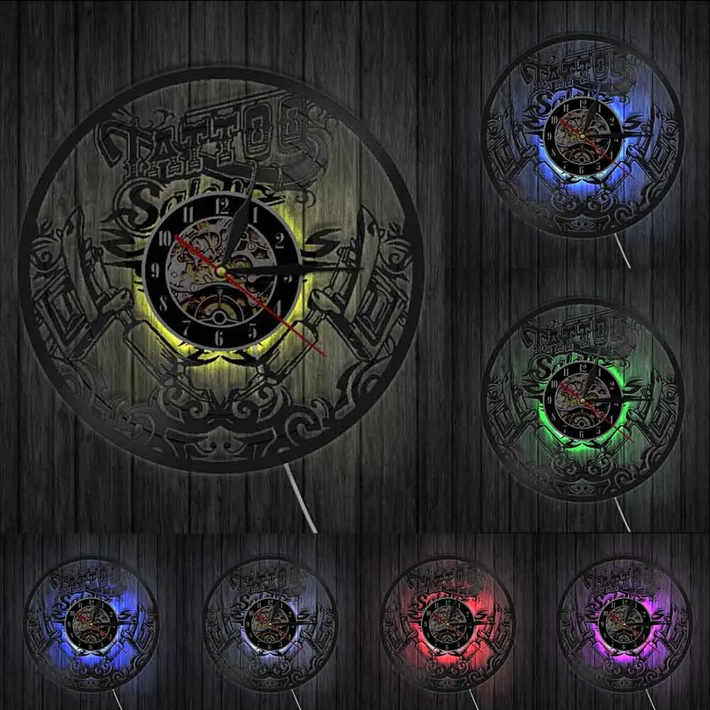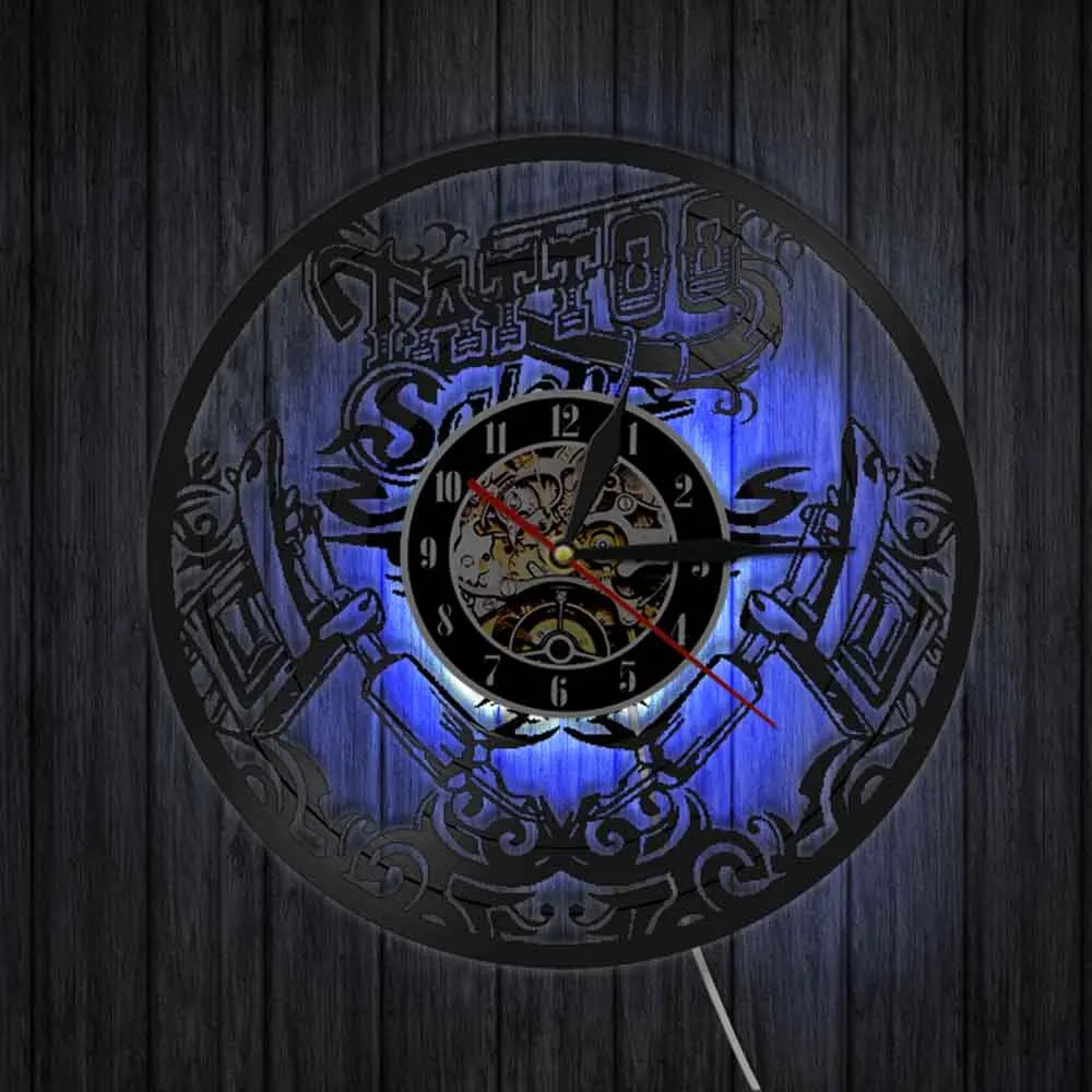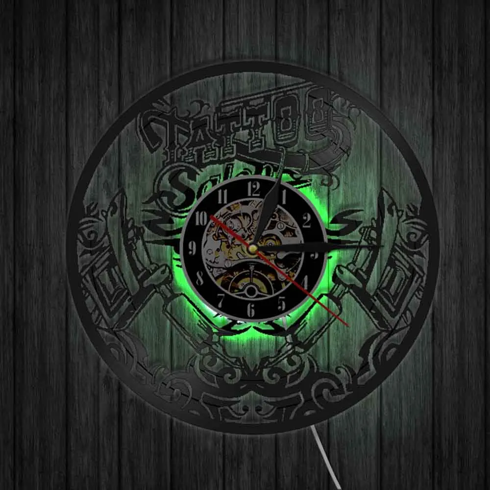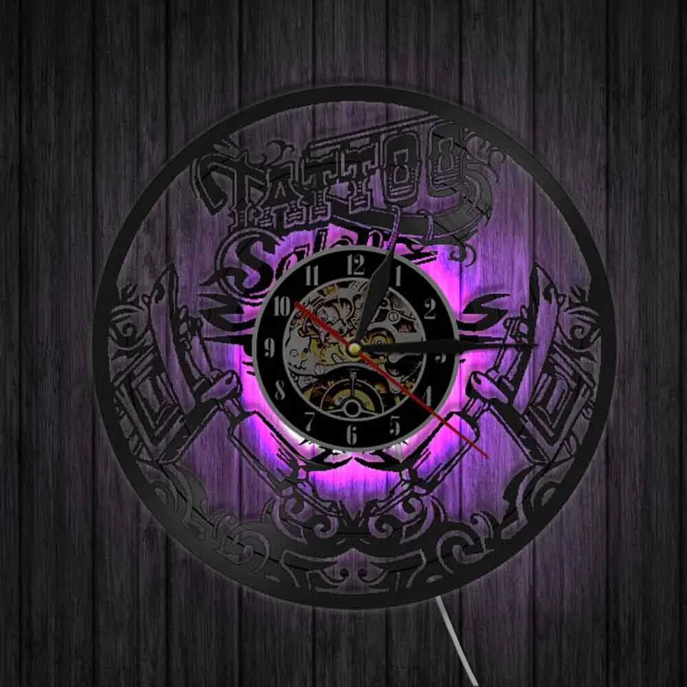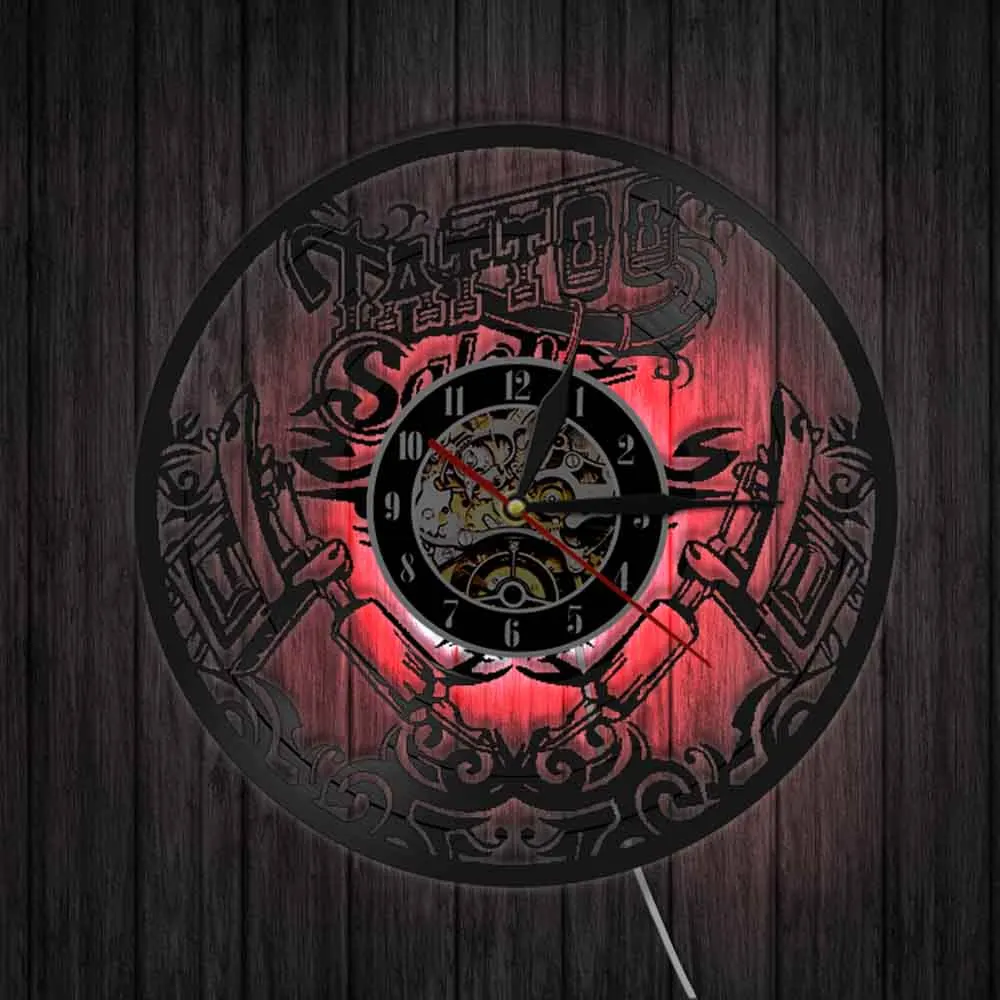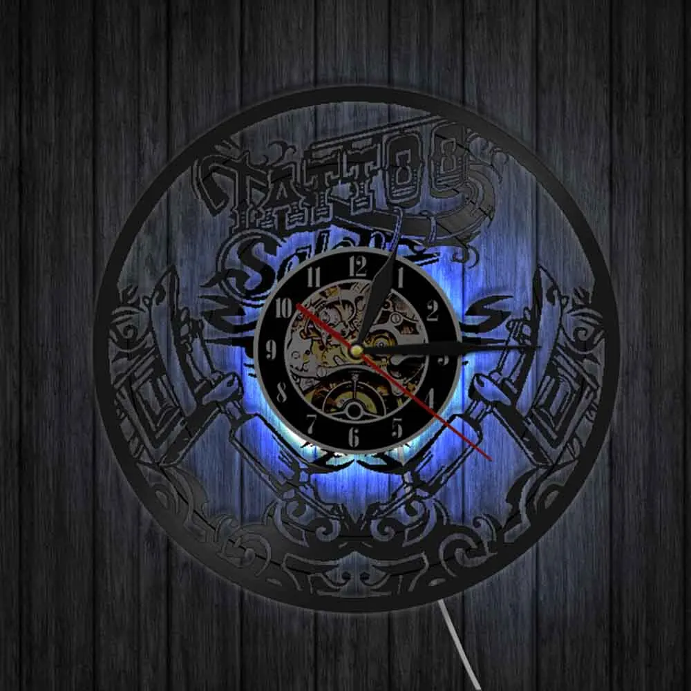 Одноразовые настенные часы для тату-салона, виниловые пластинки, тату часы, Висячие часы, тихий подарок ручной работы для татуировщика