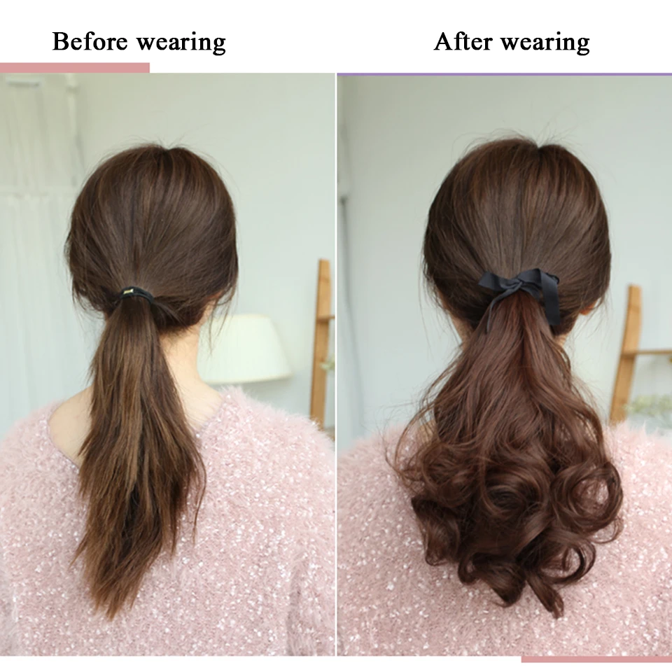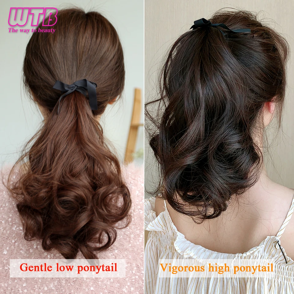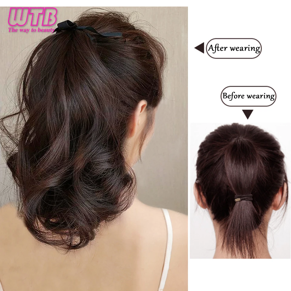 WTB короткий кудрявый конский хвост для женщин, термостойкий синтетический волнистый хвост на шнурке, черные, коричневые волнистые волосы для конского хвоста