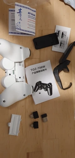 Доставка менее 3 дней, прибыл в идеальном состоянии, без коробки, как описано, геймпад, разъем USB 2,4G, адаптер micro OTG, адаптер USB C, поддержка мобильного телефона и маленькое руководство на английском/китайском языке, которое не предоставляет большой информации. Протестировано на ПК отлично работает