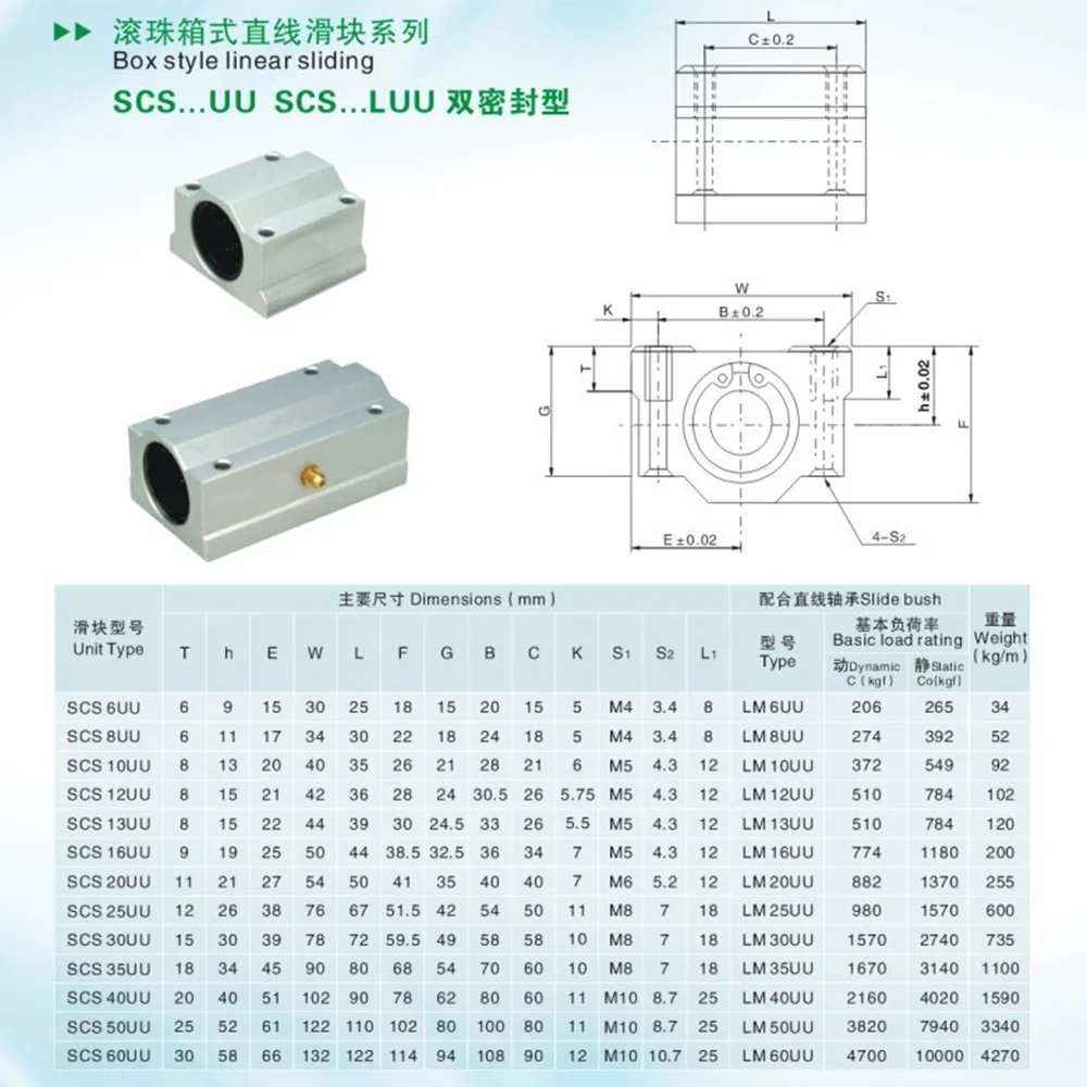 4 шт., SCS6UU SCS8UU SCS10UU SCS12UU SCS13UU SCS16UU SCS20UU, Линейный шарикоподшипник, блок, фрезерный станок с ЧПУ