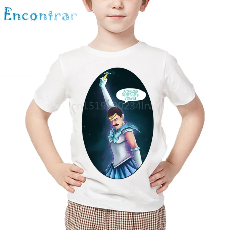 Детская футболка с принтом рок-группы Queen Freddie Mercury, детские летние белые топы, модная повседневная футболка для мальчиков и девочек, oHKP2424