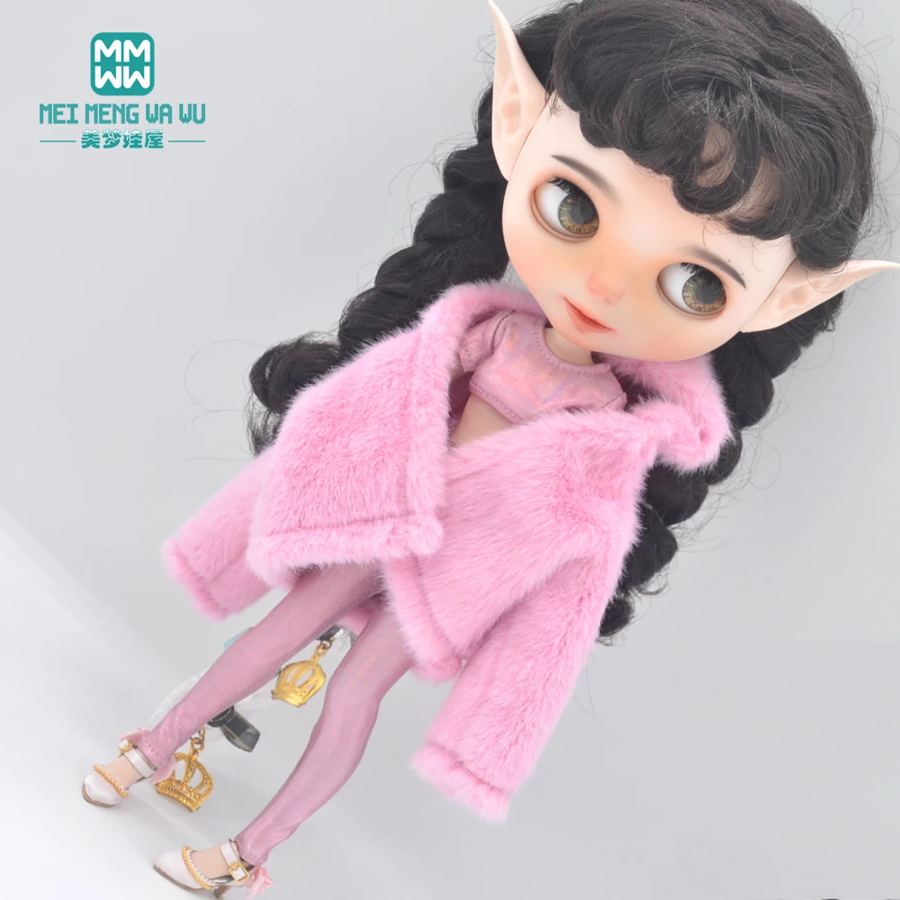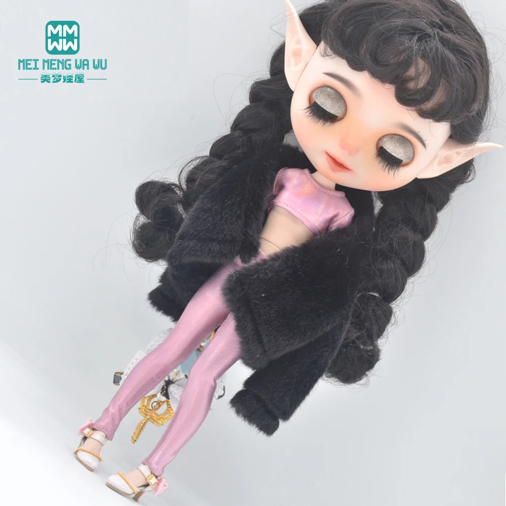 Подходит для Blyth Azone OB22 OB24 16 кукольная одежда модная плюшевая куртка с капюшоном облегающий кожаный костюм