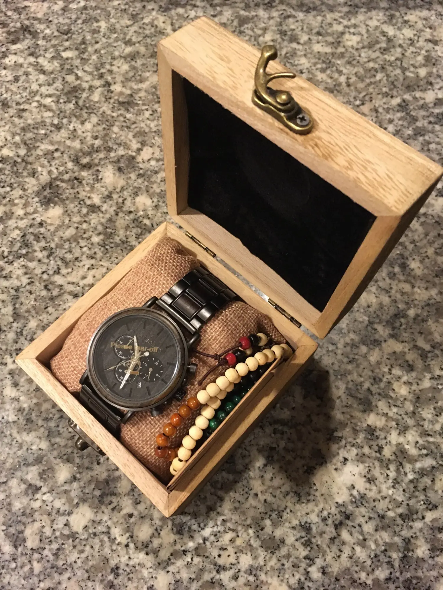 Eloj немного тяжелый, он чувствует себя на ощупь гораздо более высокого качества, чем я ожидал, хорошие и красивые детали, деревянная коробка, в которой часы защищены, они повлияли на следующее ожерелье, продукт и инструмент, как описывает продавец, хронограф работает очень хорошо. Пакет прибыл хорошо, потребовалось немного больше времени, чем ожидалось, чтобы прибыть в Сальвадор, но это больно, чтобы пройти со всеми другими продуктами, купленными онлайн.