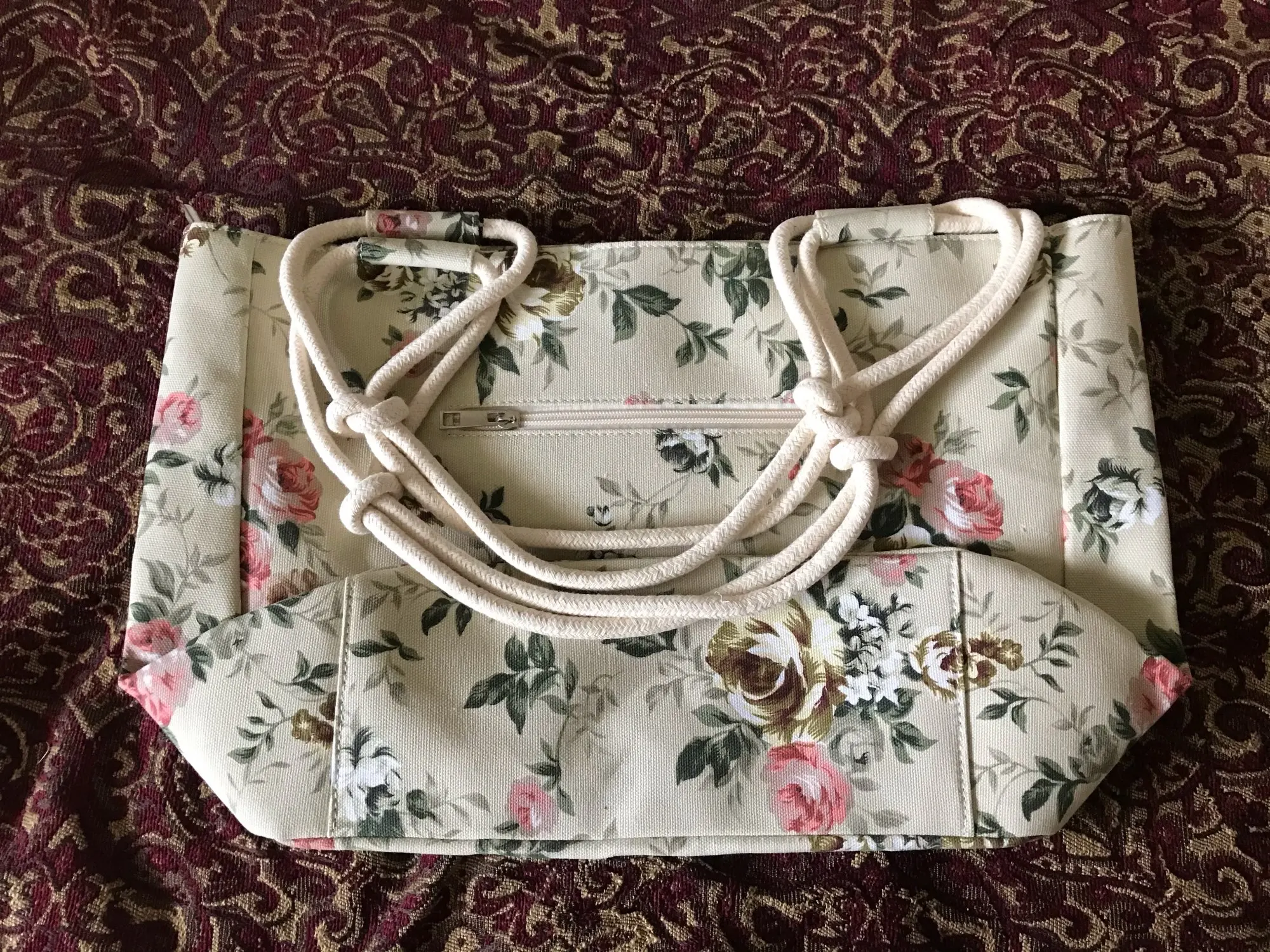 Качественно сшита. Красивая и вместительная сумка! Хорошо пришита змейка. Я очень довольна. Дно сумки не укреплено, оно мягкое. Нитки нигде не торчат. Внутри есть дополнительные кармашки. Буду носить её летом. Можно брать её на пикник. Доставка в Эстонию хорошая. С продавцом не общалась, трек код отслеживался хорошо.