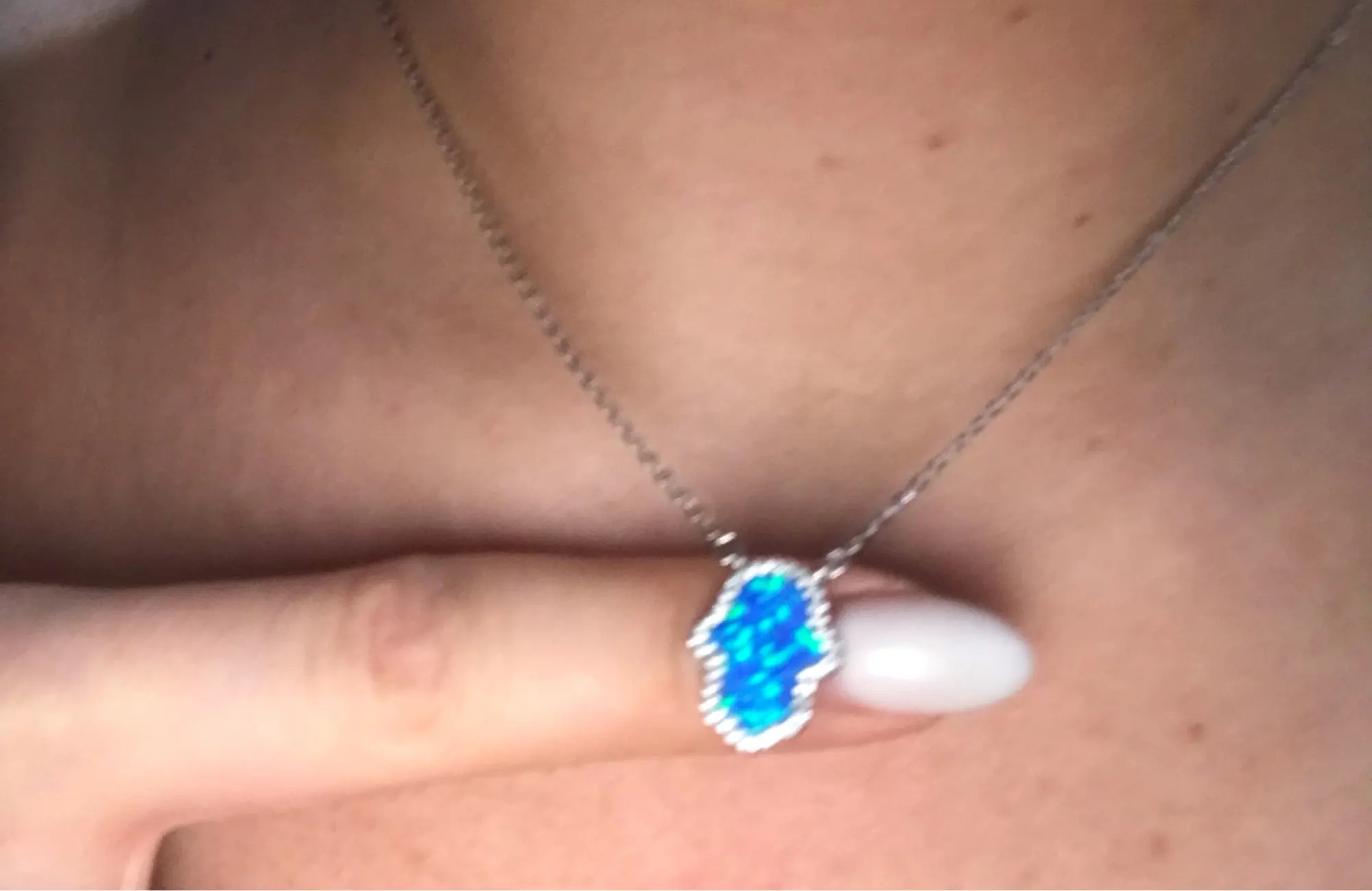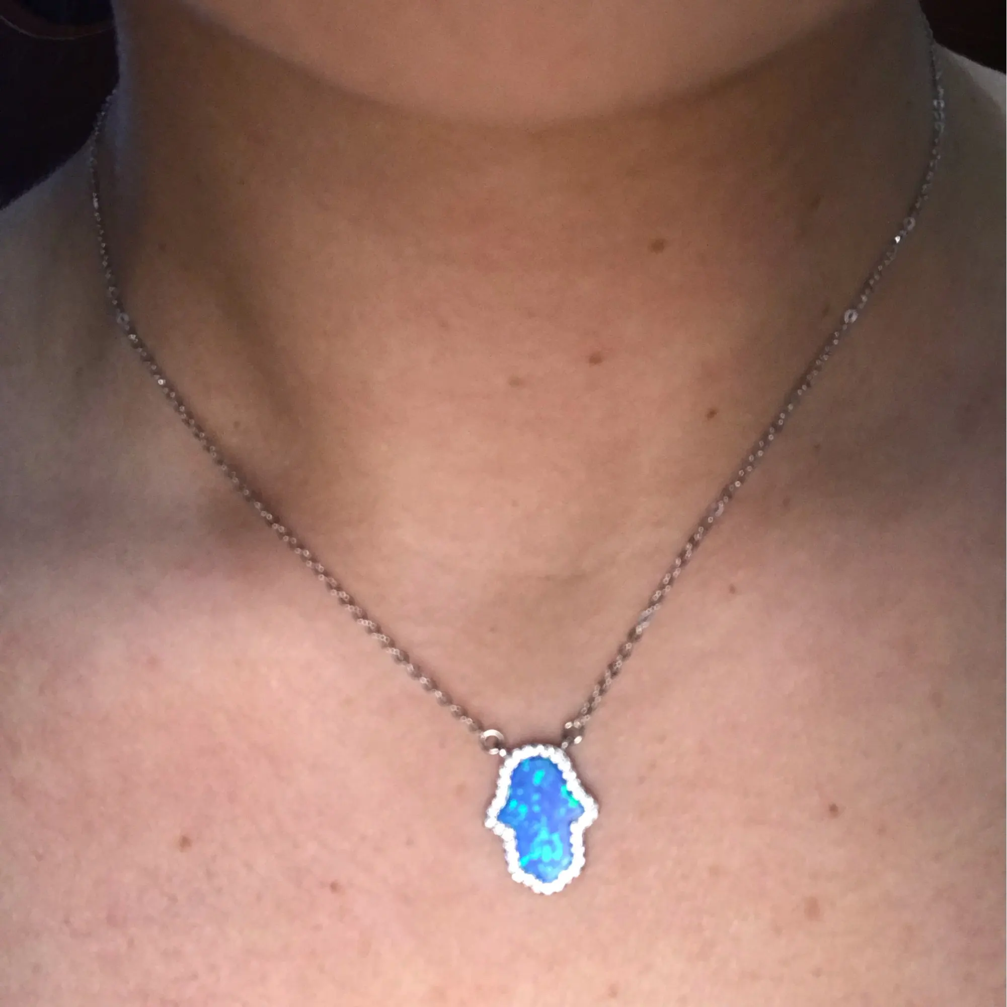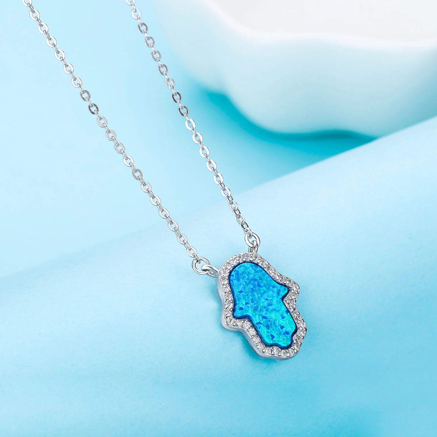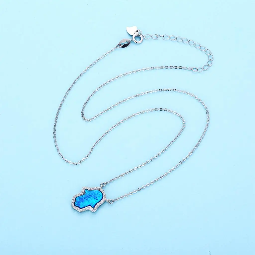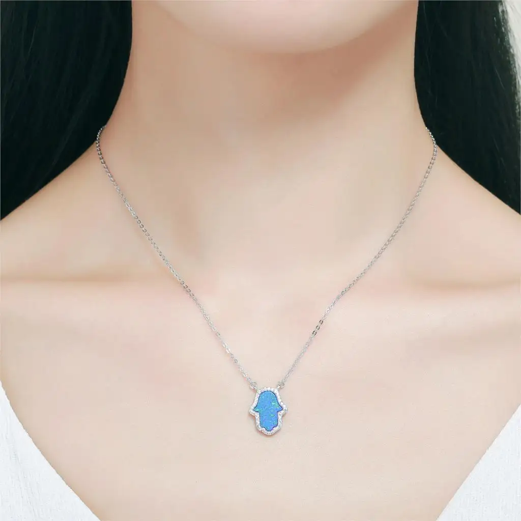 Роскошное ожерелье TONGZHE с подвеской рукой Хамса из синтетического опала ожерелье из стерлингового серебра 925 пробы ювелирные изделия ожерелье Женская кабельная цепочка удлинитель 16 + 2 дюйма