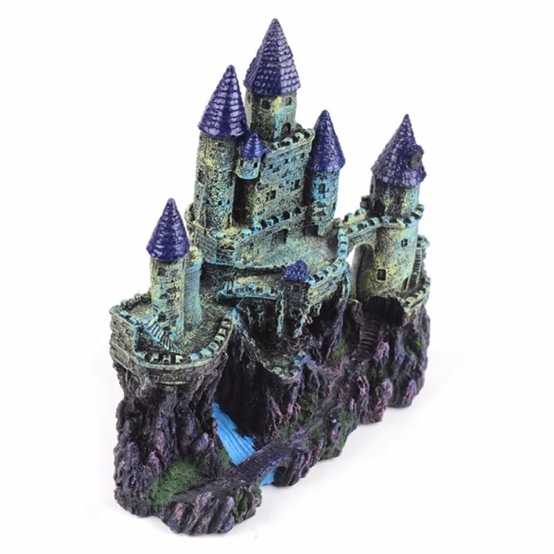 Аквариумный искусственный замок длиной 24 см, камень для украшения аквариума, старый замок, башня, украшение, водные камни, Искусственные Креветки, прятки