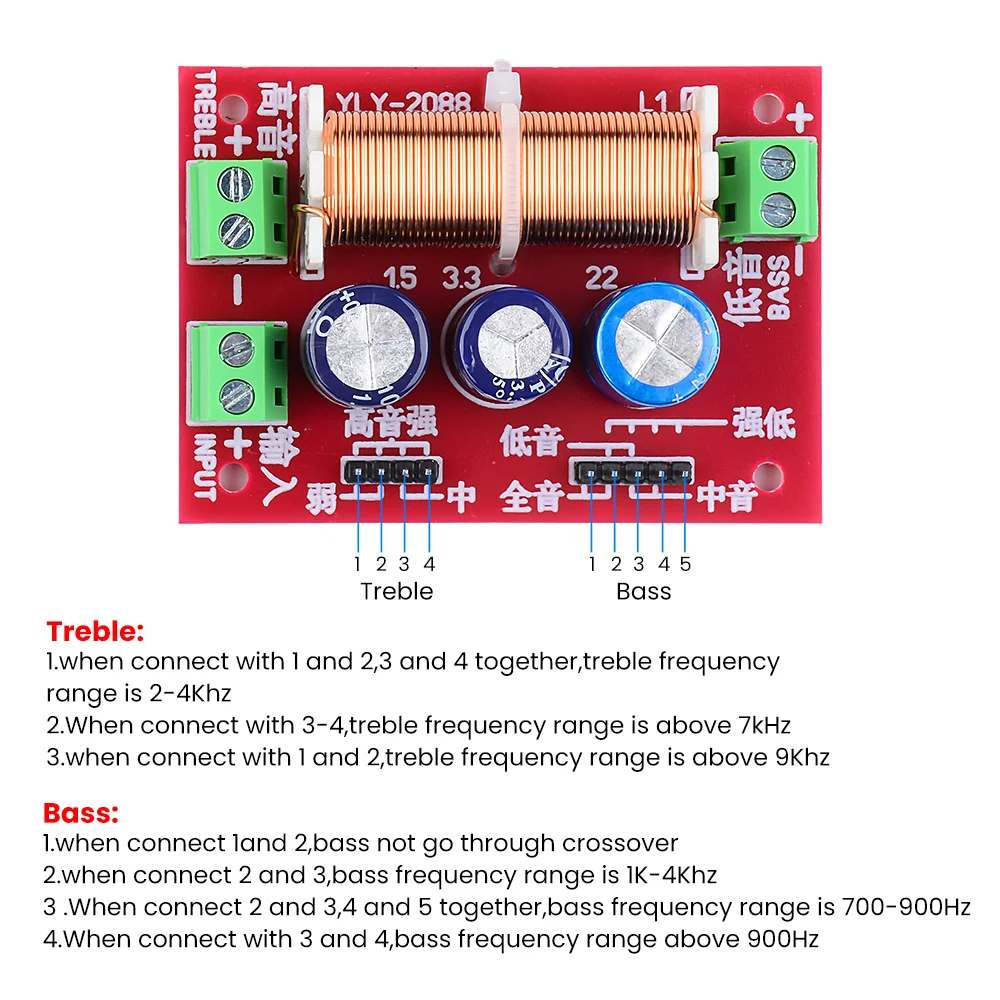 Хорошие кроссоверы. На 250-ти Ваттной акустике звучат хорошо, чётко разделяют ВЧ и НЧ. Возможны разные варианты подключения путём перестановки перемычек