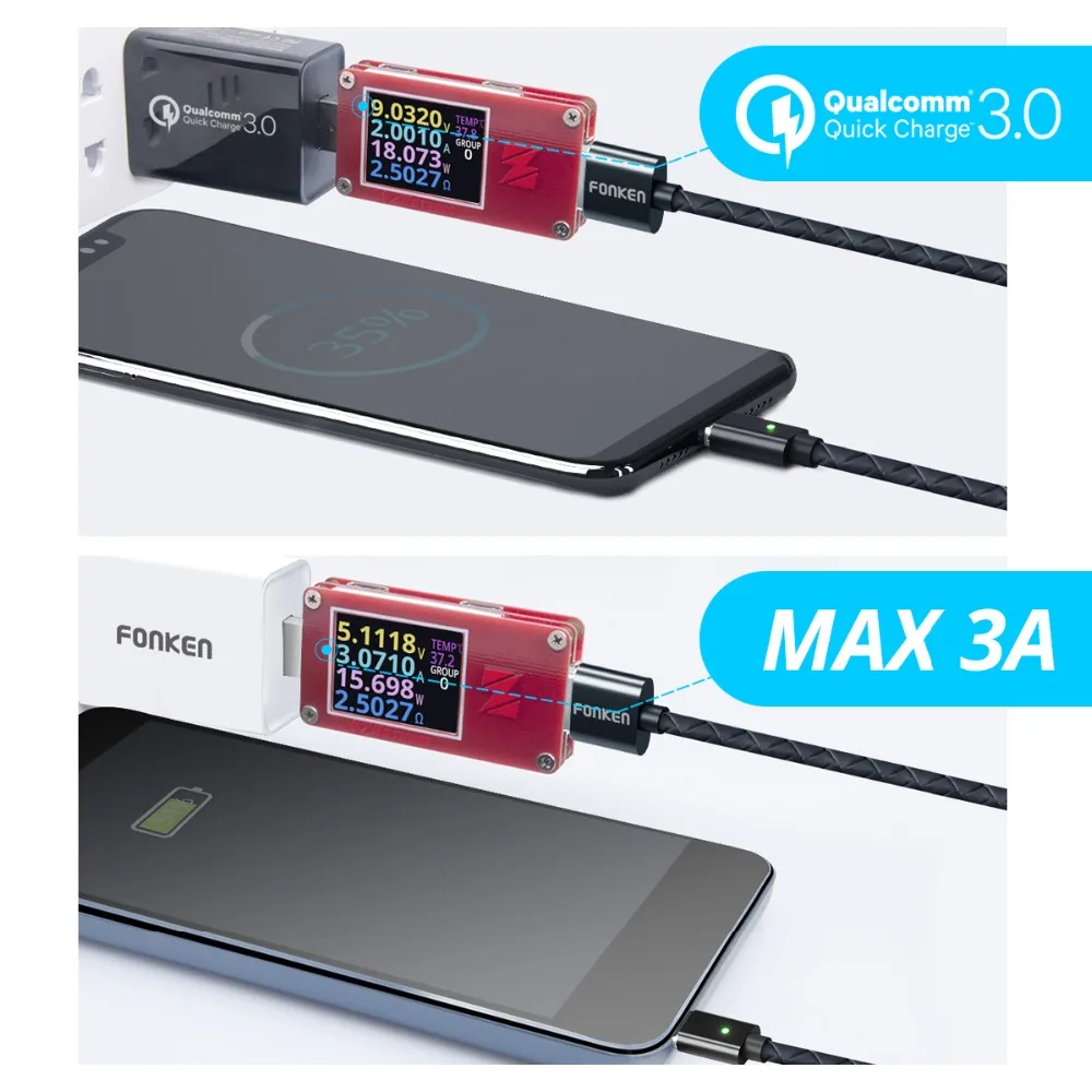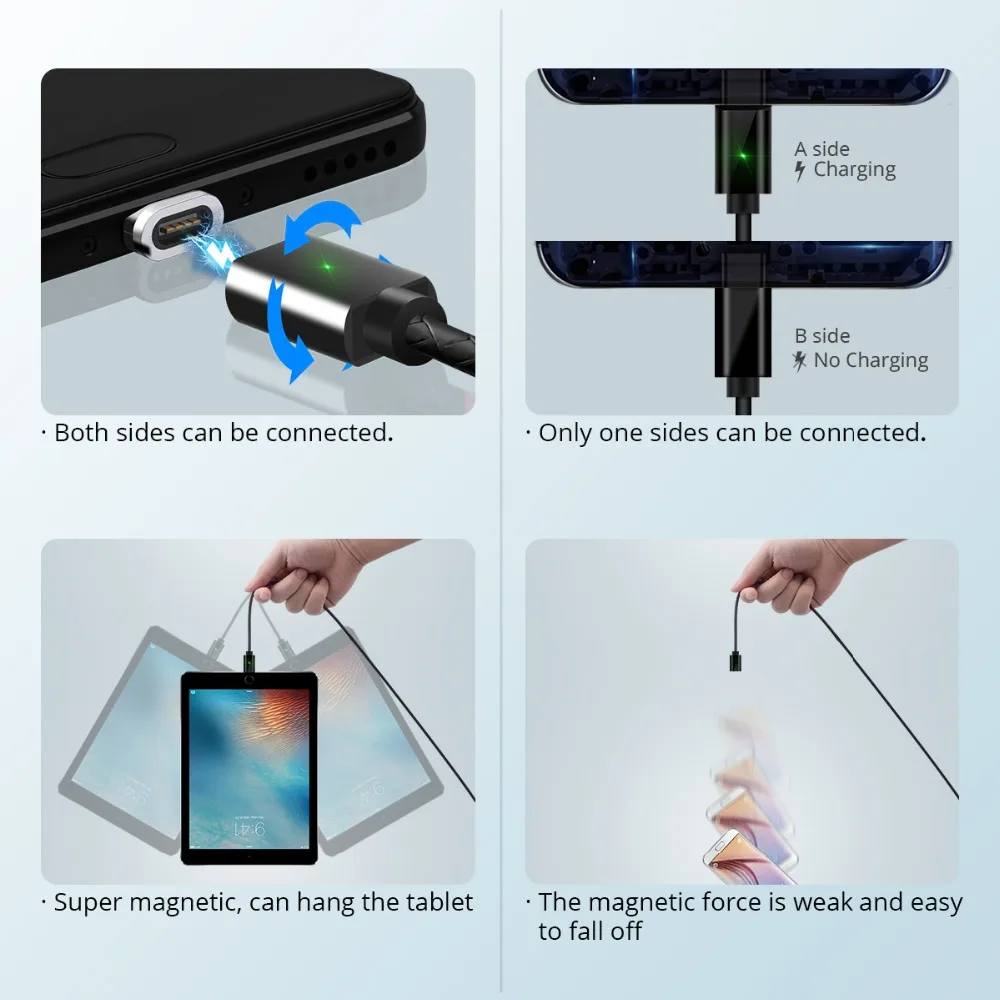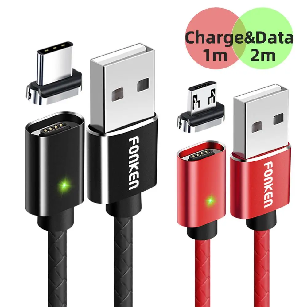 Магнитный USB кабель, USB-Micro USBUSB-Type C, 12 м, белыйкрасныйчерный