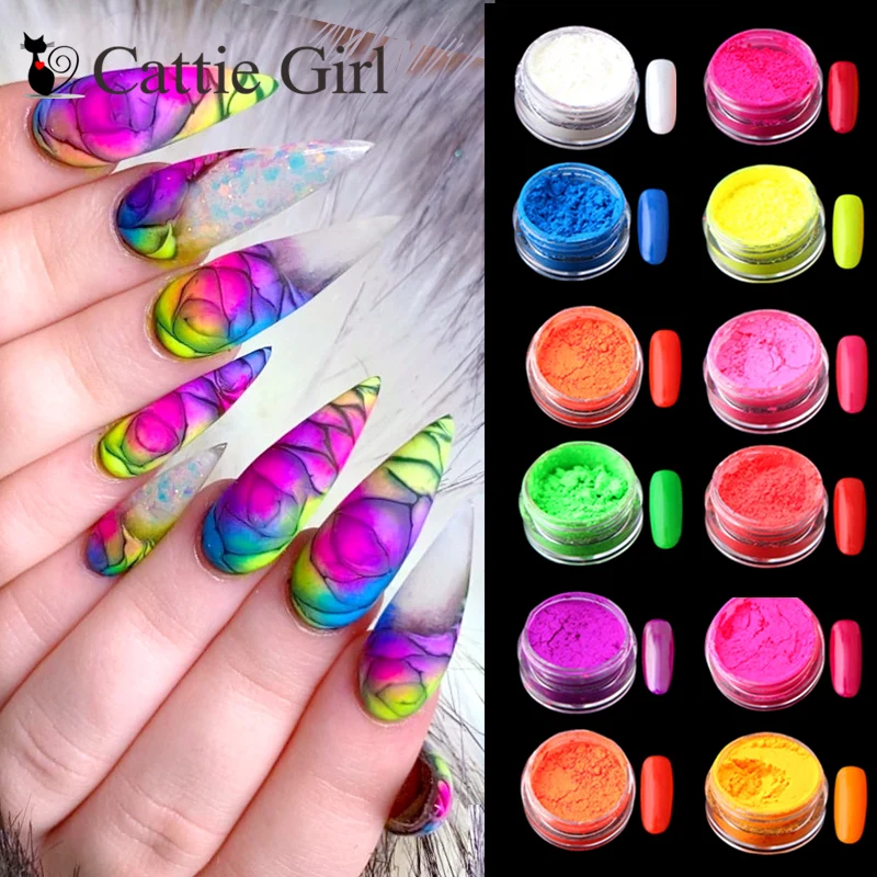 Неоновая пигментная пудра для ногтей, 12 цветовнабор