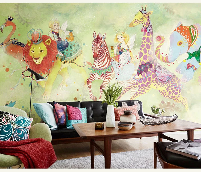 Новейшая 3d настенная фотография леса животного для детской комнаты детского сада 8d настенная фотография мультфильм Лев Жираф Настенные обои Декор