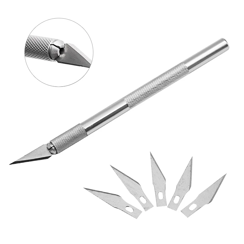 Ножи для гравировки по дереву JZL, нескользящий металлический инструмент, набор резаков + 5 лезвий, набор ручных инструментов для ремонта