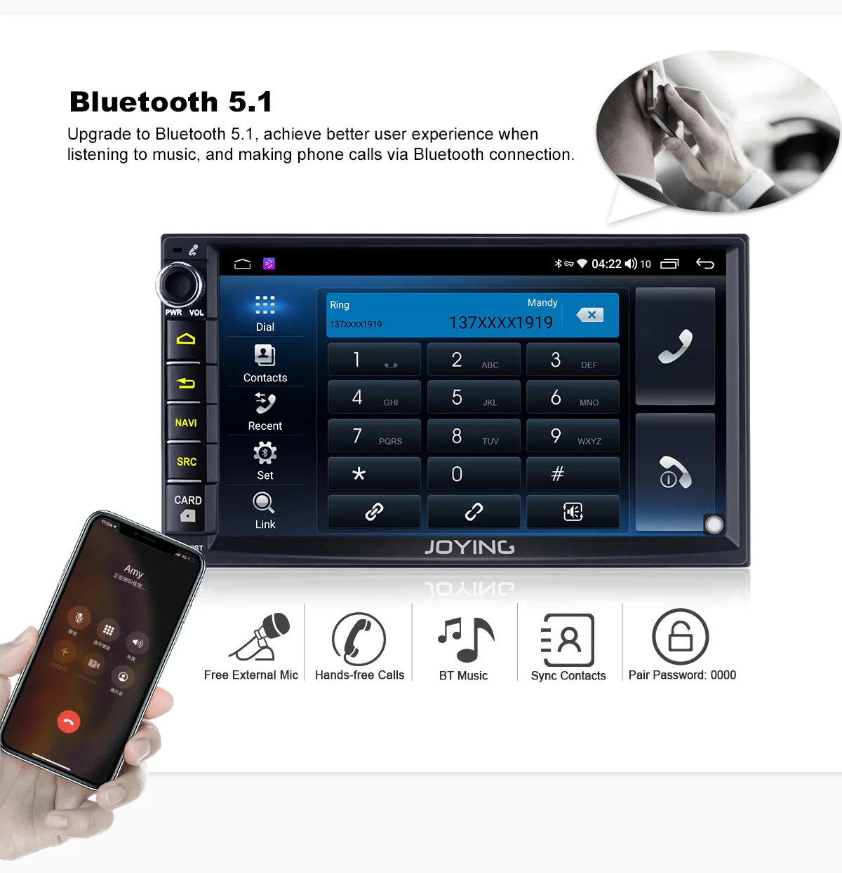 1. Совместимость с Android 10,0, UIS7862 восьми-ядерный 1,8 ГГц двухъядерный процессор ARM Mali G52 614,4 МГц 7 дюймов 2 din 1024*600 HD Экран 2. Супер аппаратная производительность, 4 Гб RAM + 64 ГБ ROM Octa Core 3. Интернет развлечения, встроенный 5G WIFI модуль супер быстрое подключение к Интернету. 4. Поддержка Google Play Store, вы можете скачать множество приложений 5. Поддержка обратной камеры aftermarket/DVR/OBD2/DAB +/TPMS, вам нужно купить отдельно 6. Поддержка быстрой загрузки, быстрое включение радио 7. Поддержка кнопок управления рулевым колесом (без Canbus автомобиля) 8. Bluetooth для handfree, Синхронизация Bluetooth телефонной книги 9. Встроенный DSP, делает радио лучше звук и более Регулируемый эквалайзер 10. Поддержка Apple carplay и Android auto Новый JOYING блок теперь поставляется с оптическим SPDIF цифровой аудиовыход * коаксиальный цифровой выход. Для максимального качества звука вы можете напрямую подключить внешний усилитель/DSP к цифровому выходу SPDIF; Если ваш внешний усилитель/DSP не поставляется с входом SPDIF, вам нужно будет подключить усилитель/DSP через FL/FR out & RL/RR out.