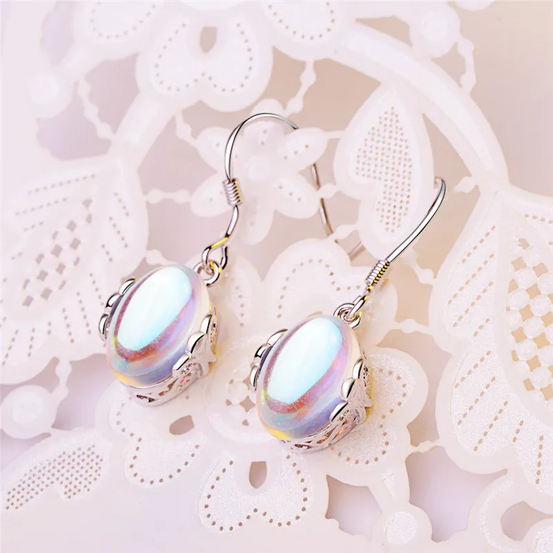 Серьги-подвески женские из серебра 925 пробы с лунным камнем