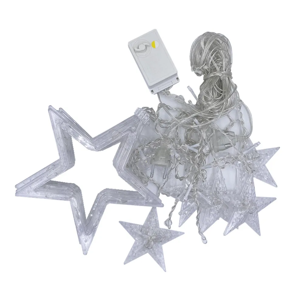 Длина основного провода: 2,5 м x высота: (0,6 м-1 м)Длина кабеля штекера: 2 мКоличество СВЕТОДИОДНЫЙ одов: 138 светодиодовСветодиодная лента: 12 шт.Диаметр 6 большой звезды: 20 см; Подвесная проволока: 1,0 мДиаметр 6 маленьких звездочек: 10 см; Подвесная проволока: 0,6 мЦвет: теплый белыйВходное напряжение: 220 ВТип вилки: вилка европейского стандарта с задней вилкой может быть подключена к концевому разъемуКонтроллер переключения: 8 режимов.