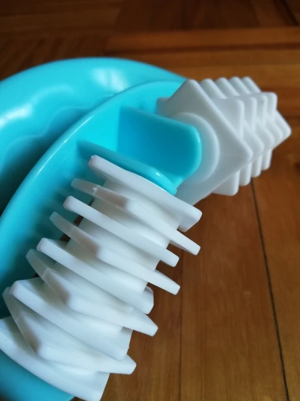 A masszino része szilikon/gumi sserű и fogantyhou olcsho műanyag. Ha eggyk iratyba gérgetem, becsili, bőrёm и masik iratyba széthuzza.