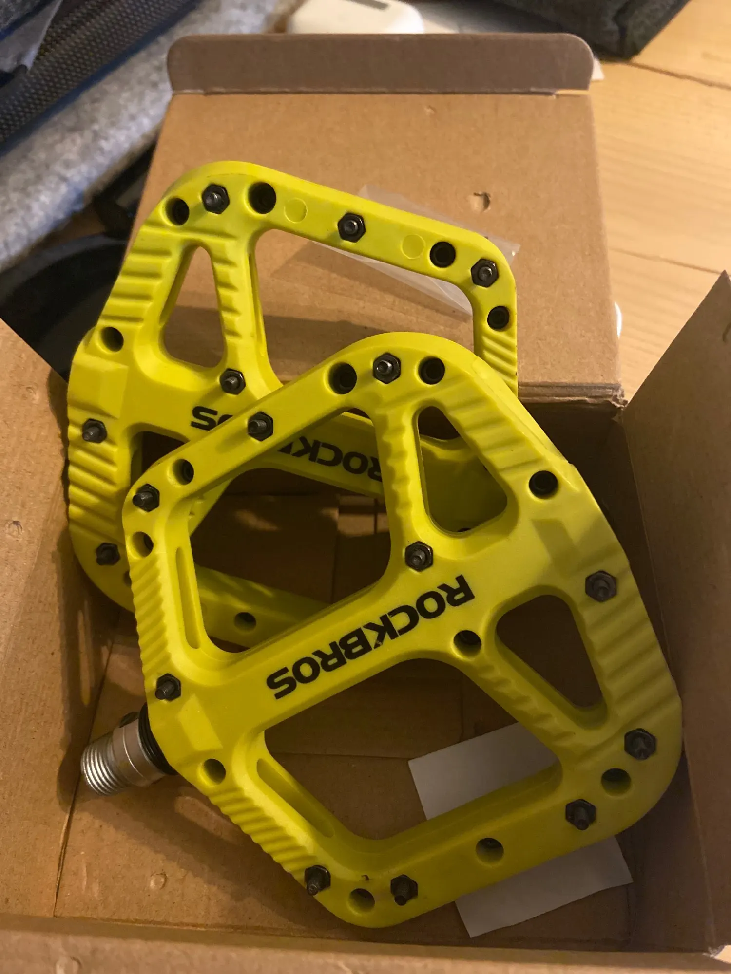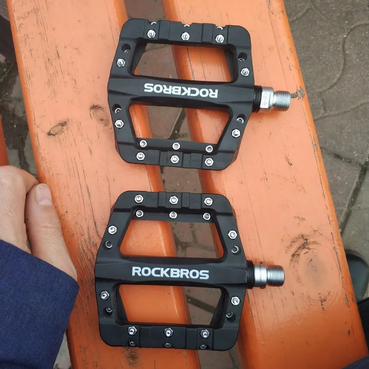Ну так, нормально. Педали огромные, я не знаю зачем. Они на ~15мм шире и еще на ~15 мм длиннее, моих прошлых, наверное для снежного человека делали. И чтоб все возможные камни задевать. Я эти пластиковые варианты знаю, они же как кусок мыла стираются, если по асфальту чиркнуть наклонив вел на повороте. Шипы очень длинные и тонкие, другой длинны в комплекте нет. Типа стачивай сам, да?) Проверяйте всё шестигранником, у меня один шип болтался, резьба оказалась сорвана, хорошо что положили несколько запасных. Оси без люфта, пыльники хорошие, всё закрывают, всё смазано. Я до этого взял тут пластиковый ноунейм вдвое дешевле, на четырех промах, вы наверное видели, самые популярные по заказам, через полгода у меня на них лопнула ось. Rockbros это проверенный мной бренд, с ними такого быть не должно, не жалейте денег в этом плане.