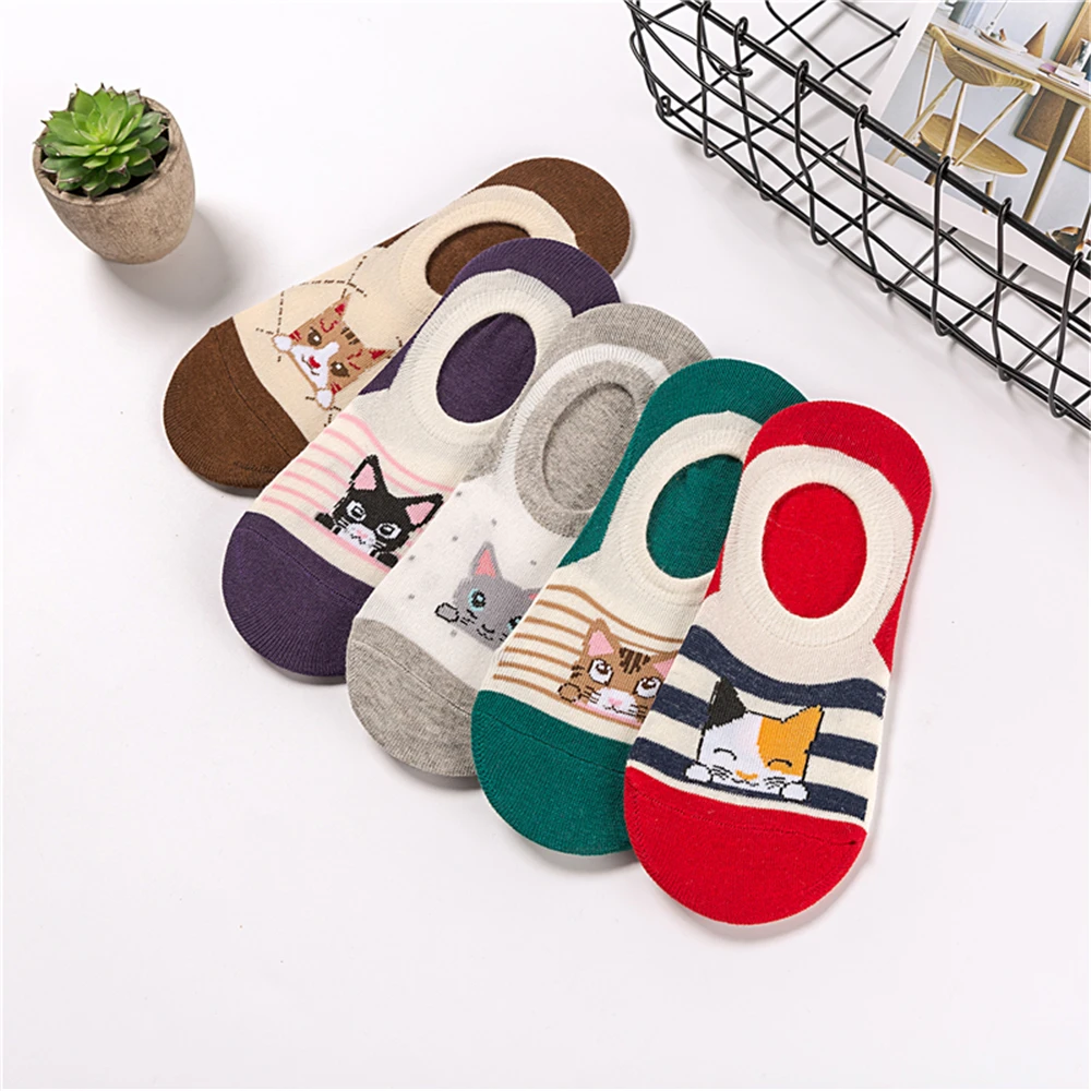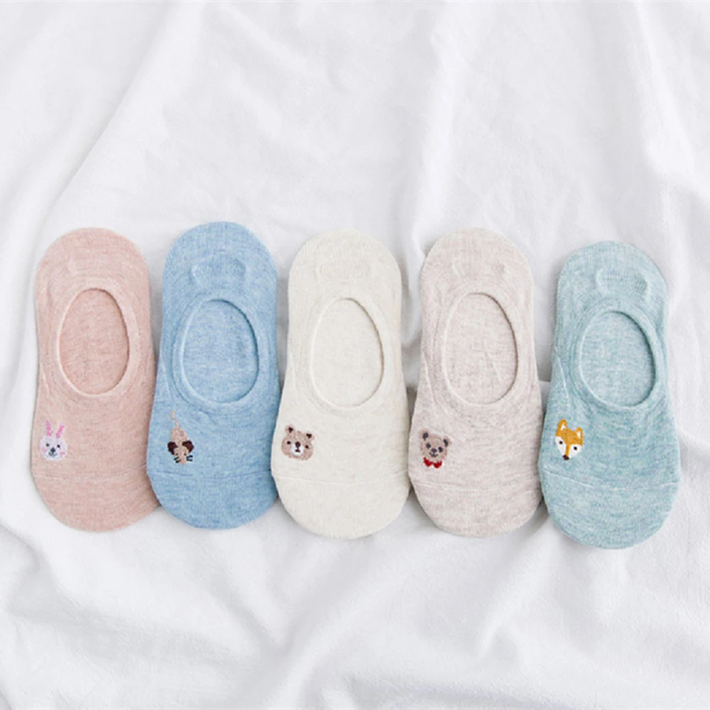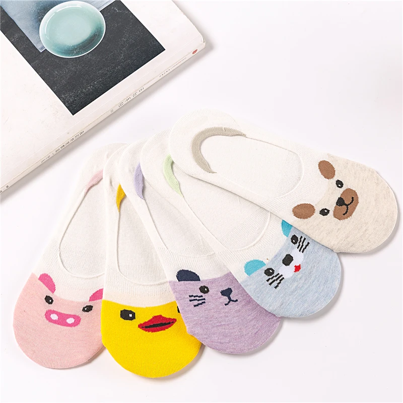 Летние корейские носки 5 парт, женские носки с мультяшным котом, лисой, уткой, милыми животными, забавные невидимые хлопковые носки, Прямая поставка