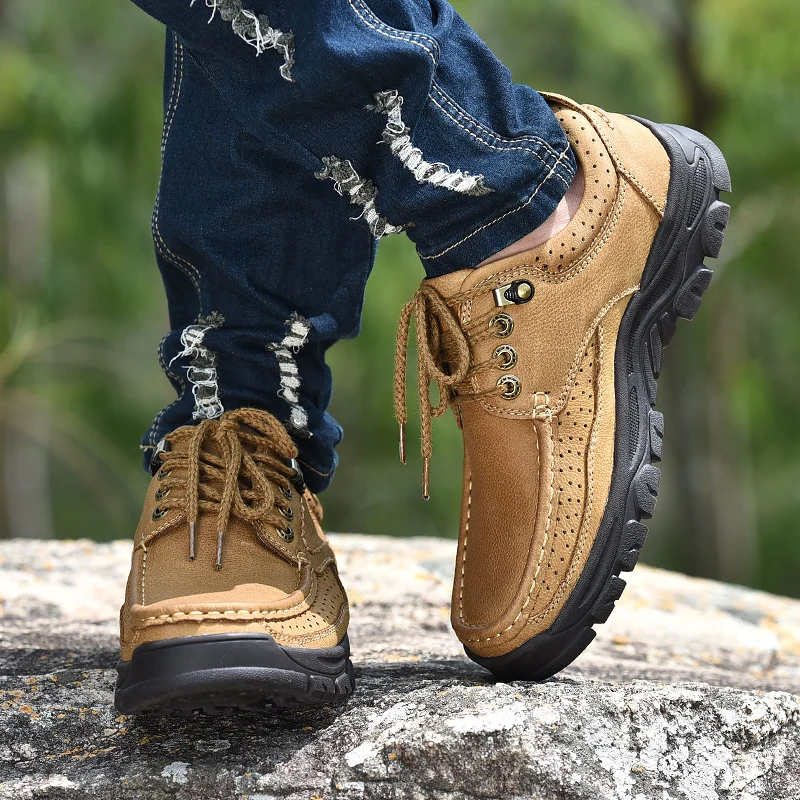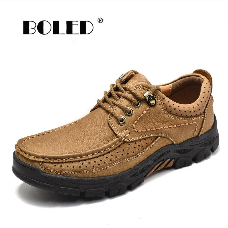Мужские ботинки из натуральной кожи, на шнуровке, удобные, нескользящая резиновая Уличная обувь, осень