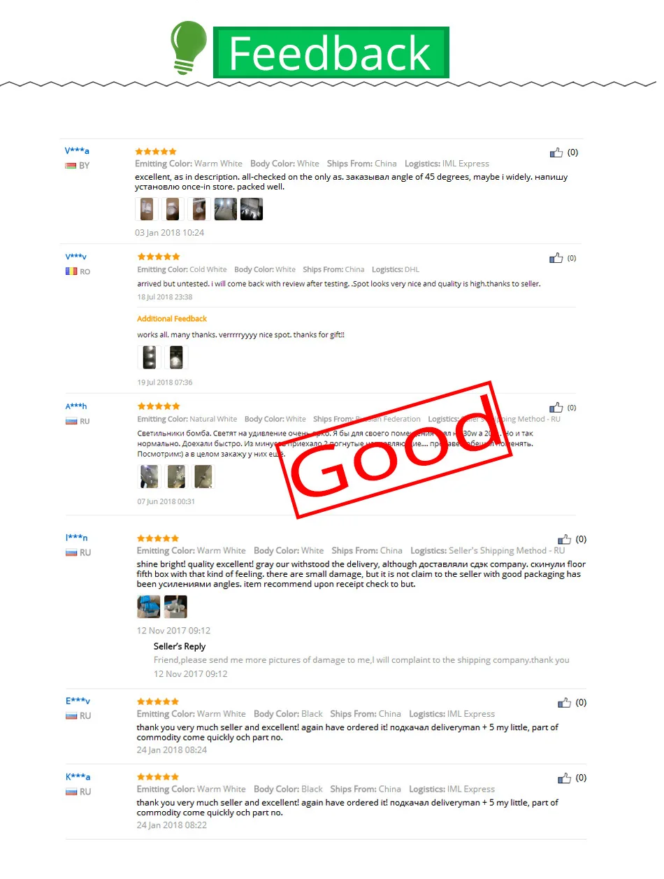 Заказываю у этого продавца уже второй раз, первые уже горят с 18 года, все ок, вторые установил на неотапливаемом балконе - работают. Качество 5 ( где то попадаются касячки при покраске, но они ничтожно малы и вы их с земли не разглядите). Так что советую! Фото не выложил, почему то не сохранились.