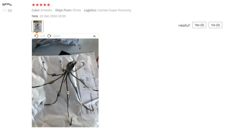 Страна: PT Color: 5 hooks Ships From: China Доставка: Cainiao Super Economy 26.12.2020