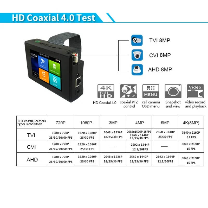 Пожалуйста, обратите внимание, что этот тестер CCTV был модернизирован для поддержки: