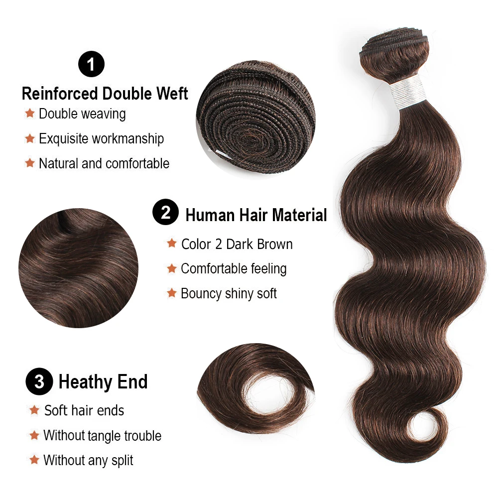 Натуральные Цветные волнистые волосы, цвет 2, цвет 4, темно-коричневый, 100% человеческие волосы, бразильские не Реми волосы, 10 -26 дюймов с закрытием
