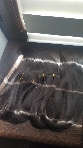 Пришли волосы быстро, недели за 2 . Чуть светлее, чем на фото. Хотя издалека выглядят темнее. Цвет 2/33 похож на Морозный каштан. Немного есть оттенок красно-розовый, блестят, жестковаты. У двойной пряди одна заколка сломана, не щелкает. Навер поэтому положили запасную заколку, одну. Ладно, бал не буду снижать, тремя стежками пришить можно заколку. В носке волосы ещё не пробовала, фото добавлю позже