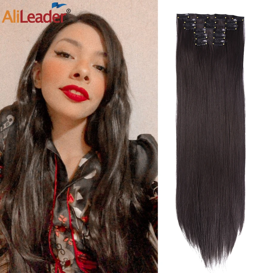 Накладные волосы Alileader, длинные прямые, 6 шт.компл., 16 зажимов, термостойкие синтетические шиньоны, накладные волосы, блонд, коричневый цвет