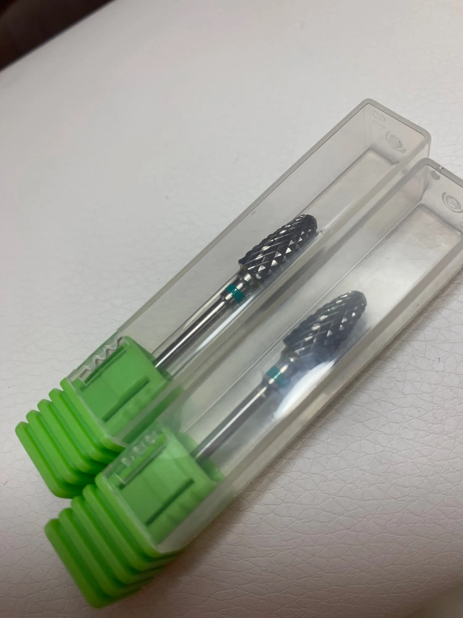 Фрезы понравились, не знаю пока на долго ли хватит. Сейчас всё нравится, пилят хорошо, довольно острые, глубоких борозд не оставляют. Пробовала снимать гель, не очень быстро, но это и не зелёная насечка. Делала тест, под рукой была типса только с гелем.