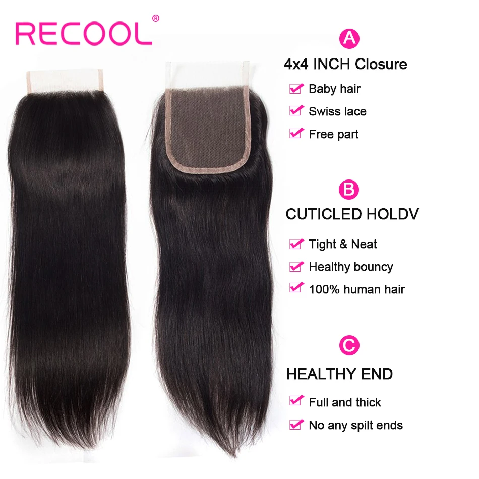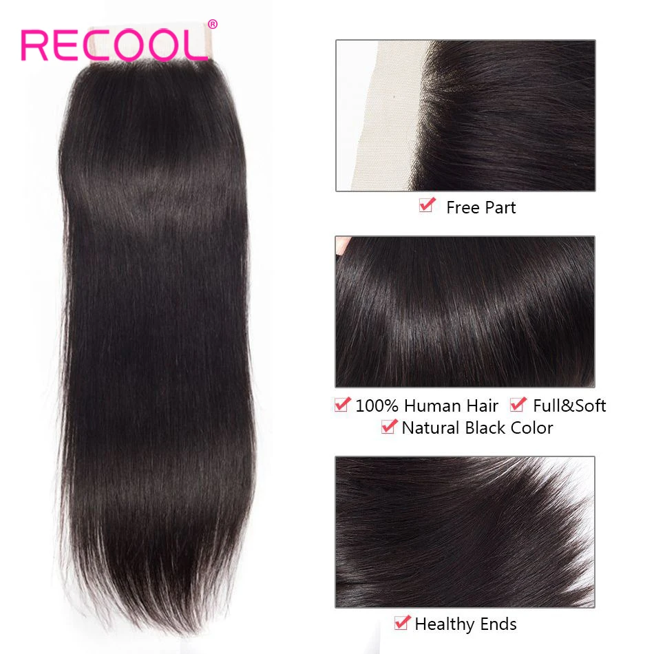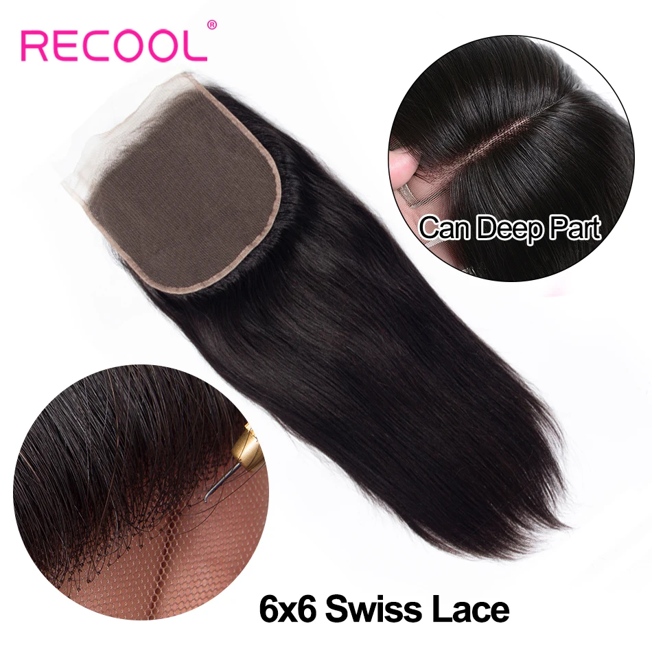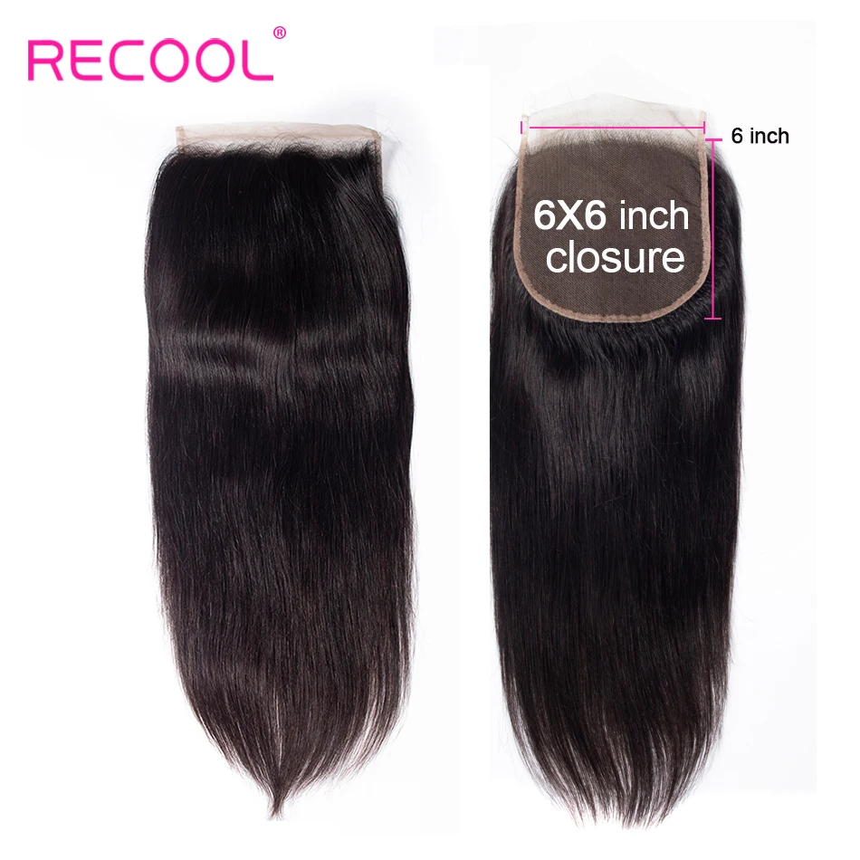 Прозрачная Кружевная застежка для волос Recool Hd, 4X4, 5X5, 6X6, бразильские прямые волосы, 20-22 дюйма, Реми, человеческие волосы, швейцарская кружевная верхняя застежка
