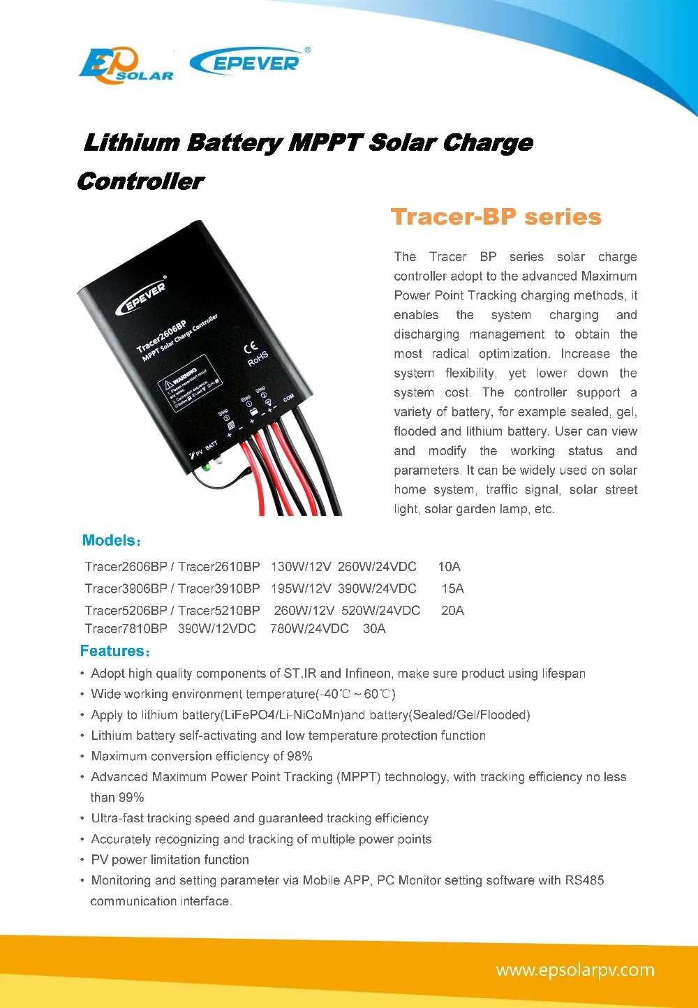 Регулятор заряда для литиевых батарей MPPT EPEVER, Tracer2606BP, 10...