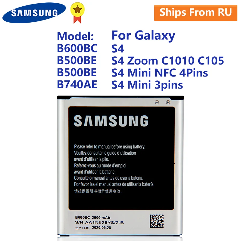 Оригинальный аккумулятор Samsung для Samsung GALAXY S4 B600BC I9500 S4Mini S4 mini I9195 I9198 I9190 I9192 S4 Zoom C101 C105 с NFC