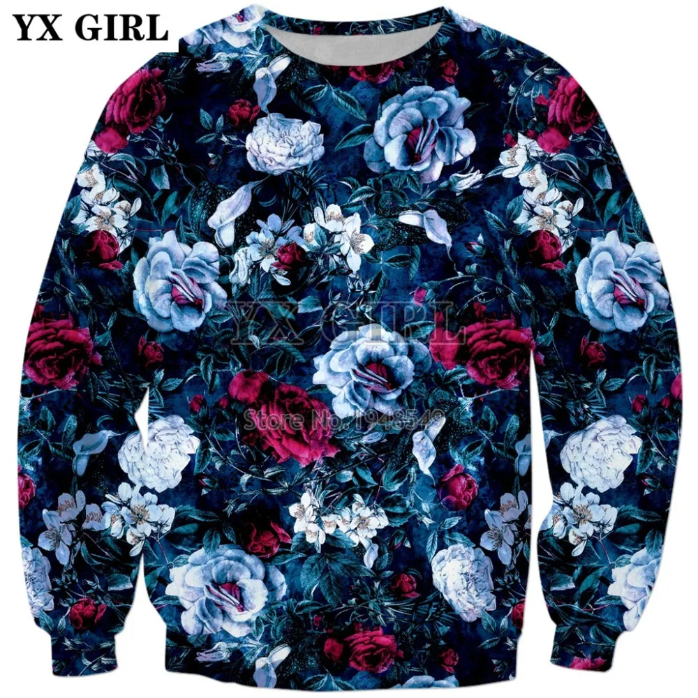Новинка 2018, модный мужской свитшот, худи с 3D рисунком в виде цветов, ночного сада, для мужчин и женщин, хипстерский Свитшот