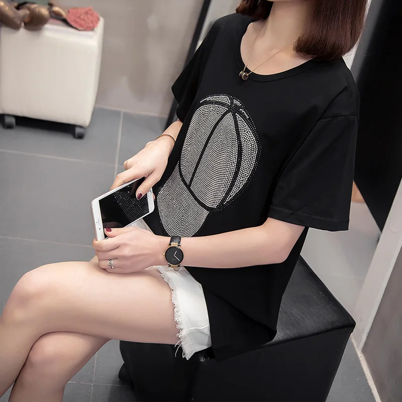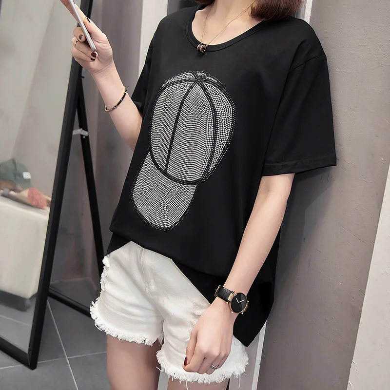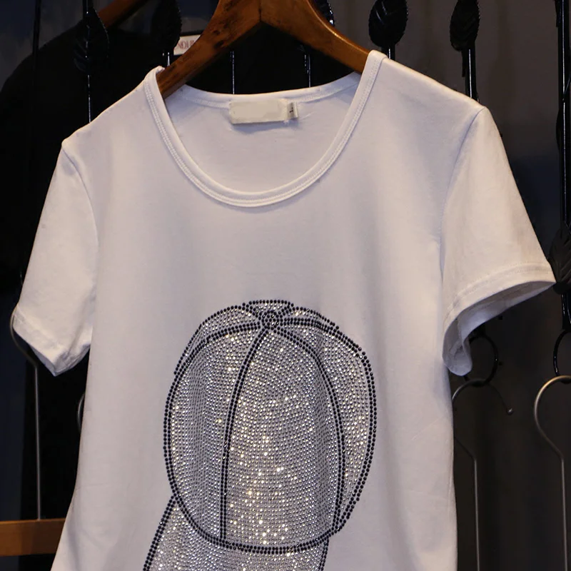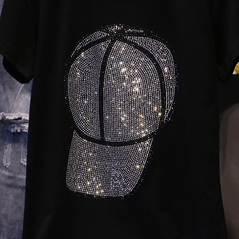 Футболки женские 2021 летние новые модные украшения бейсболки с горячими бриллиантами женская одежда топы с короткими рукавами пуловеры